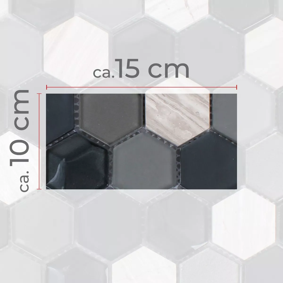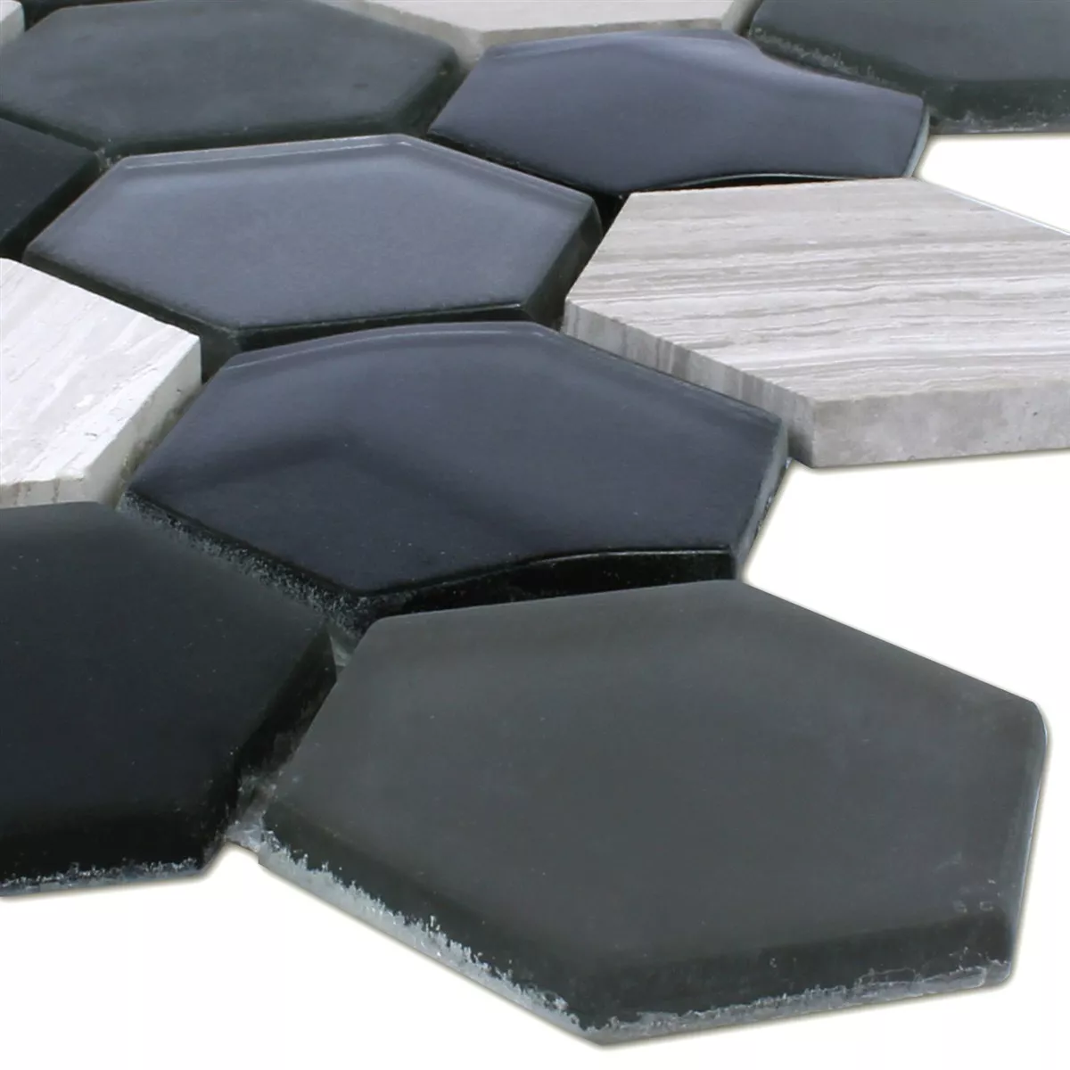 Mønster fra Mosaikkfliser Sekskant Glass Naturstein Svart Grå 3D