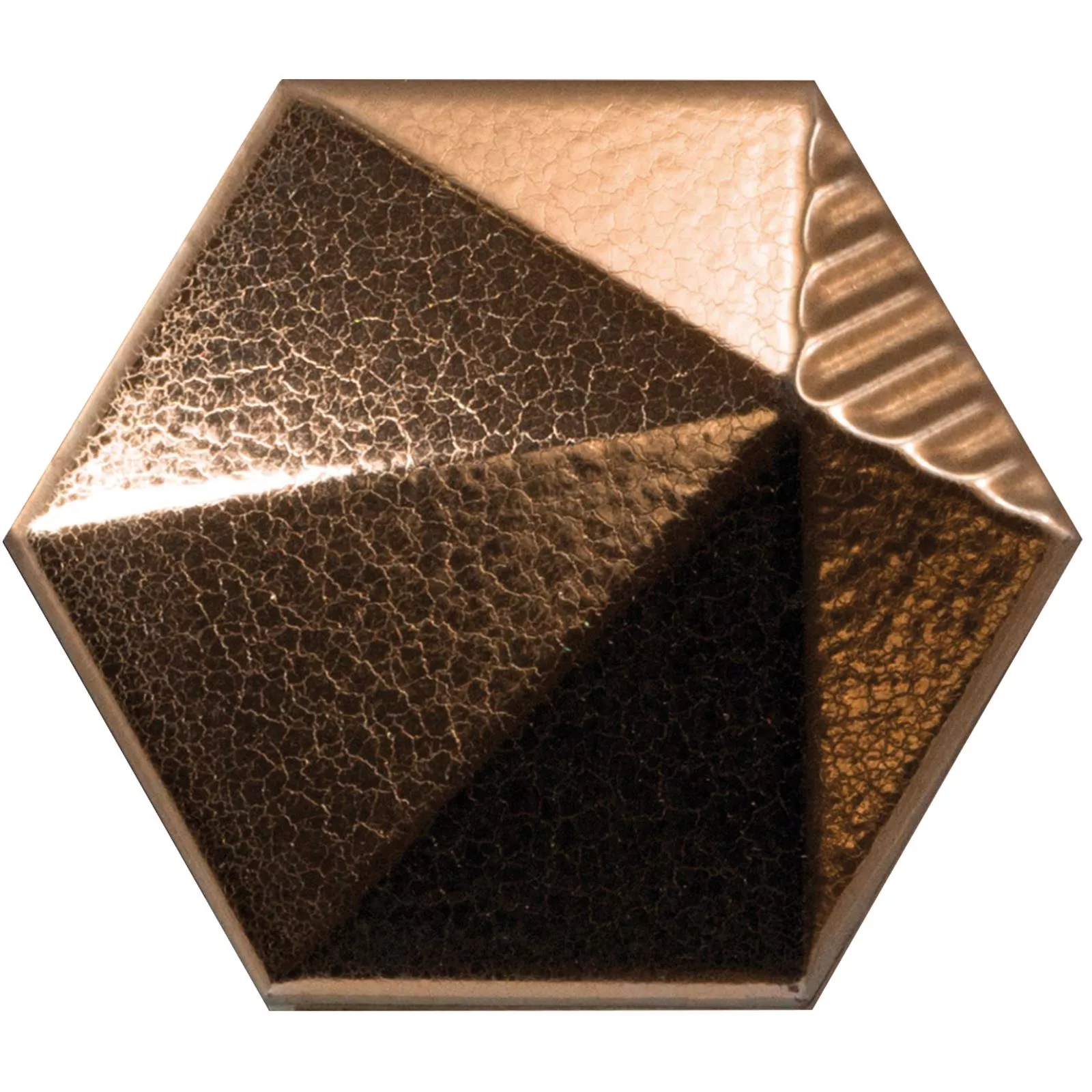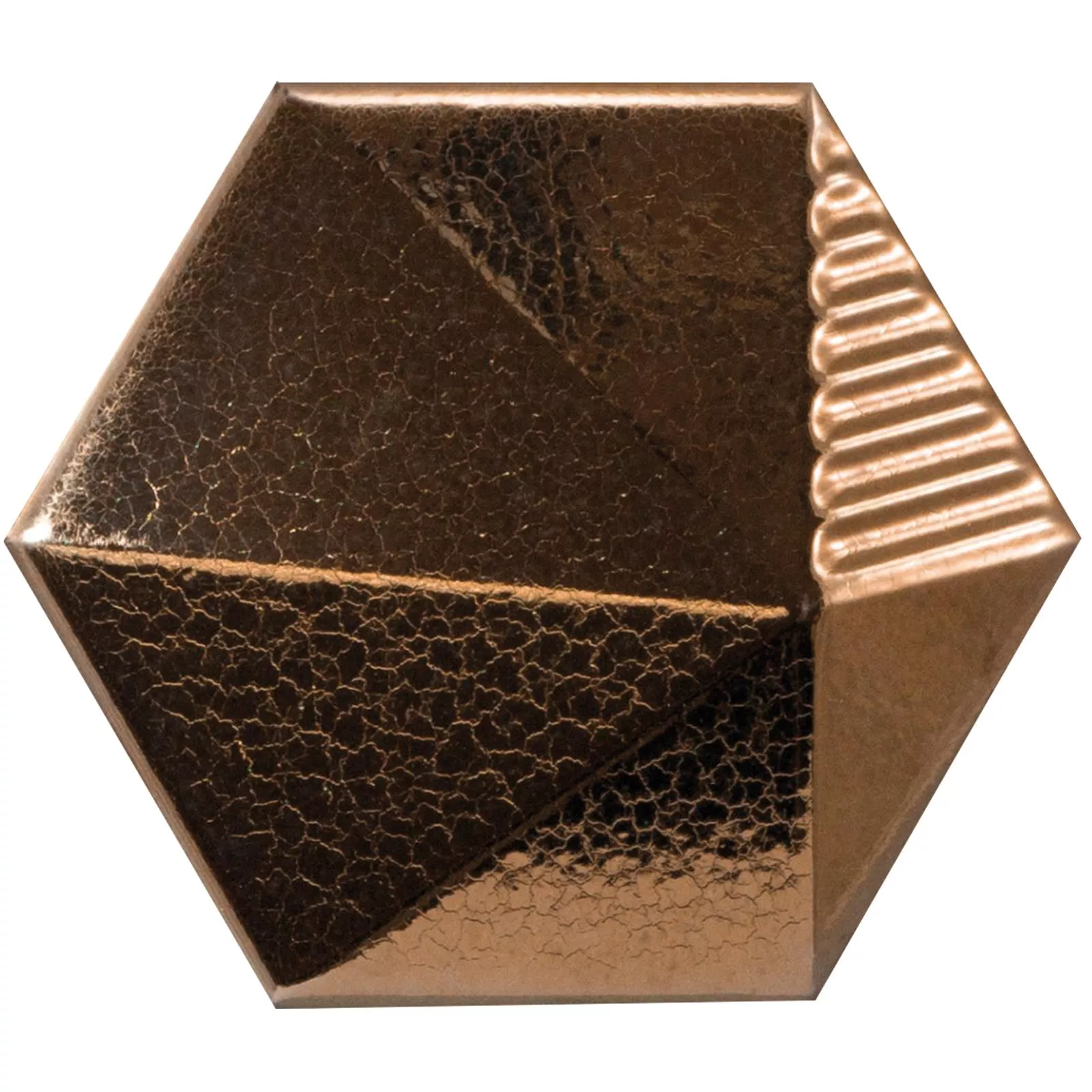 Mønster Veggfliser Rockford 3D Sekskant 12,4x10,7cm Kobber