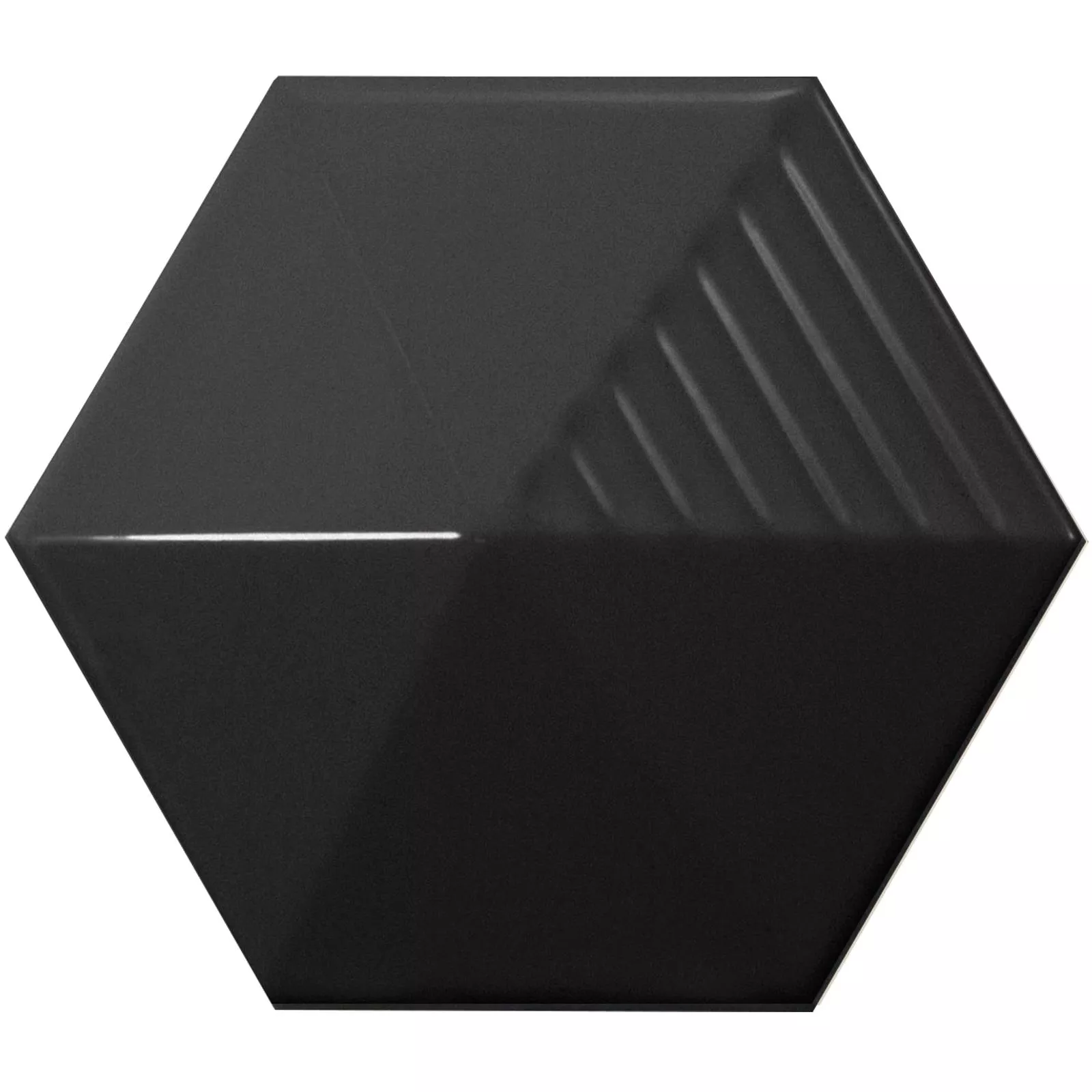 Mønster Veggfliser Rockford 3D Sekskant 12,4x10,7cm Svart