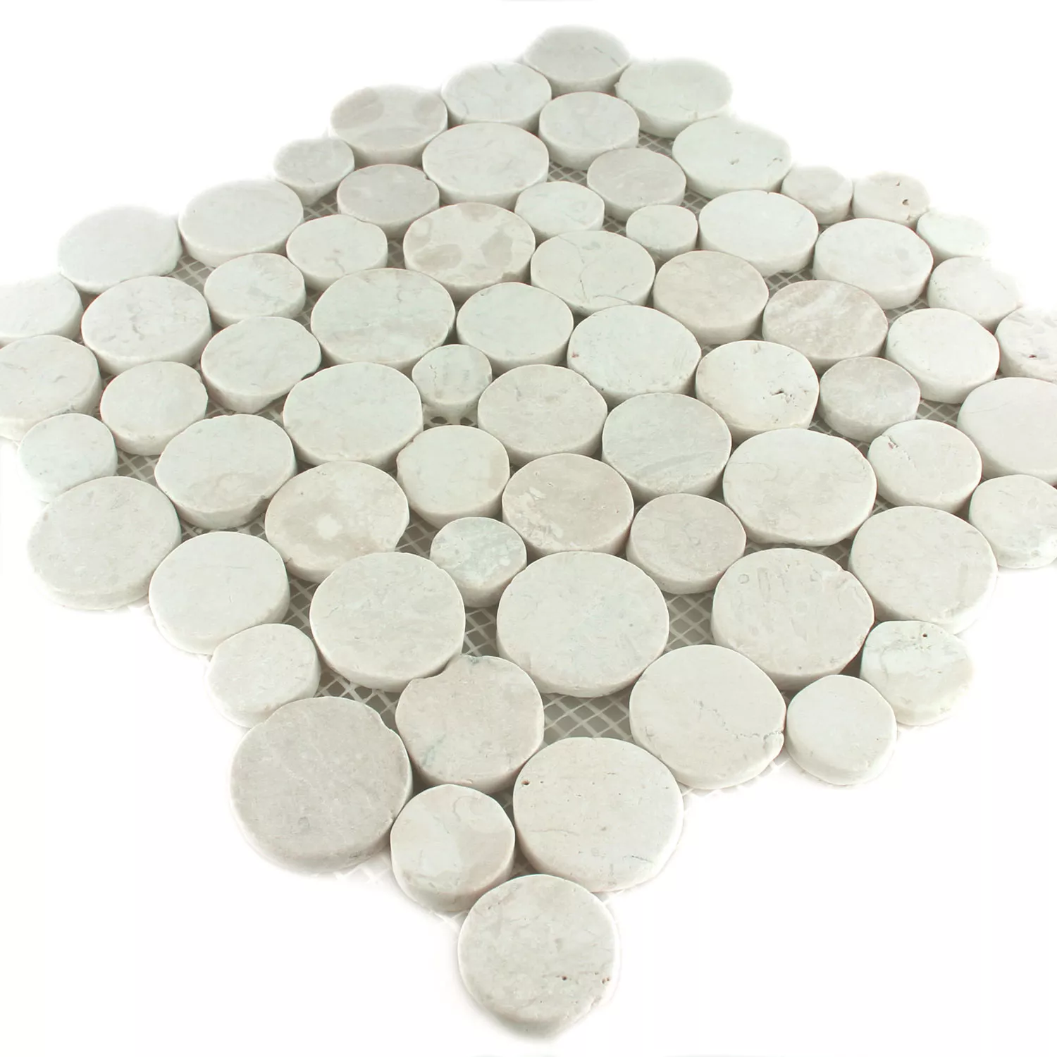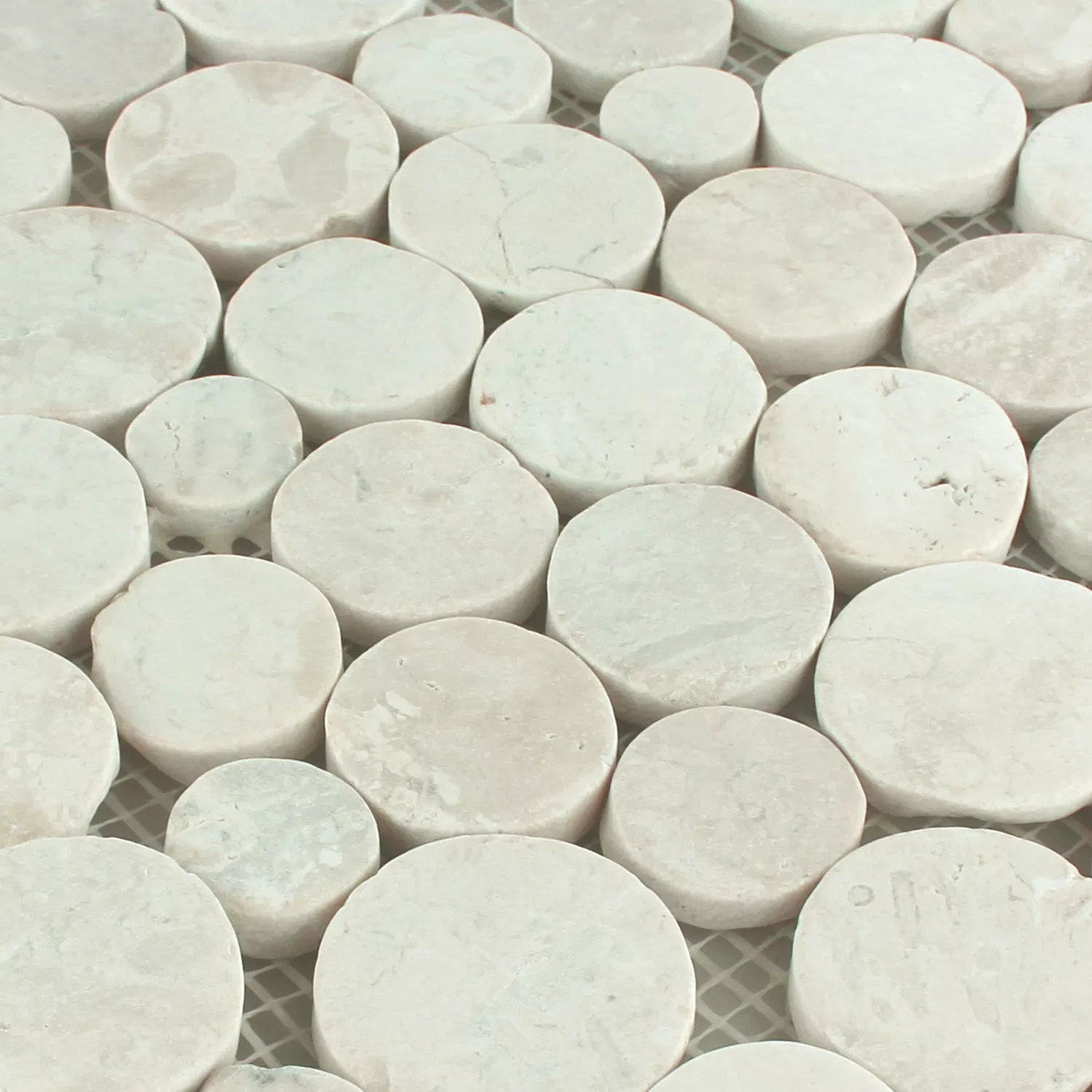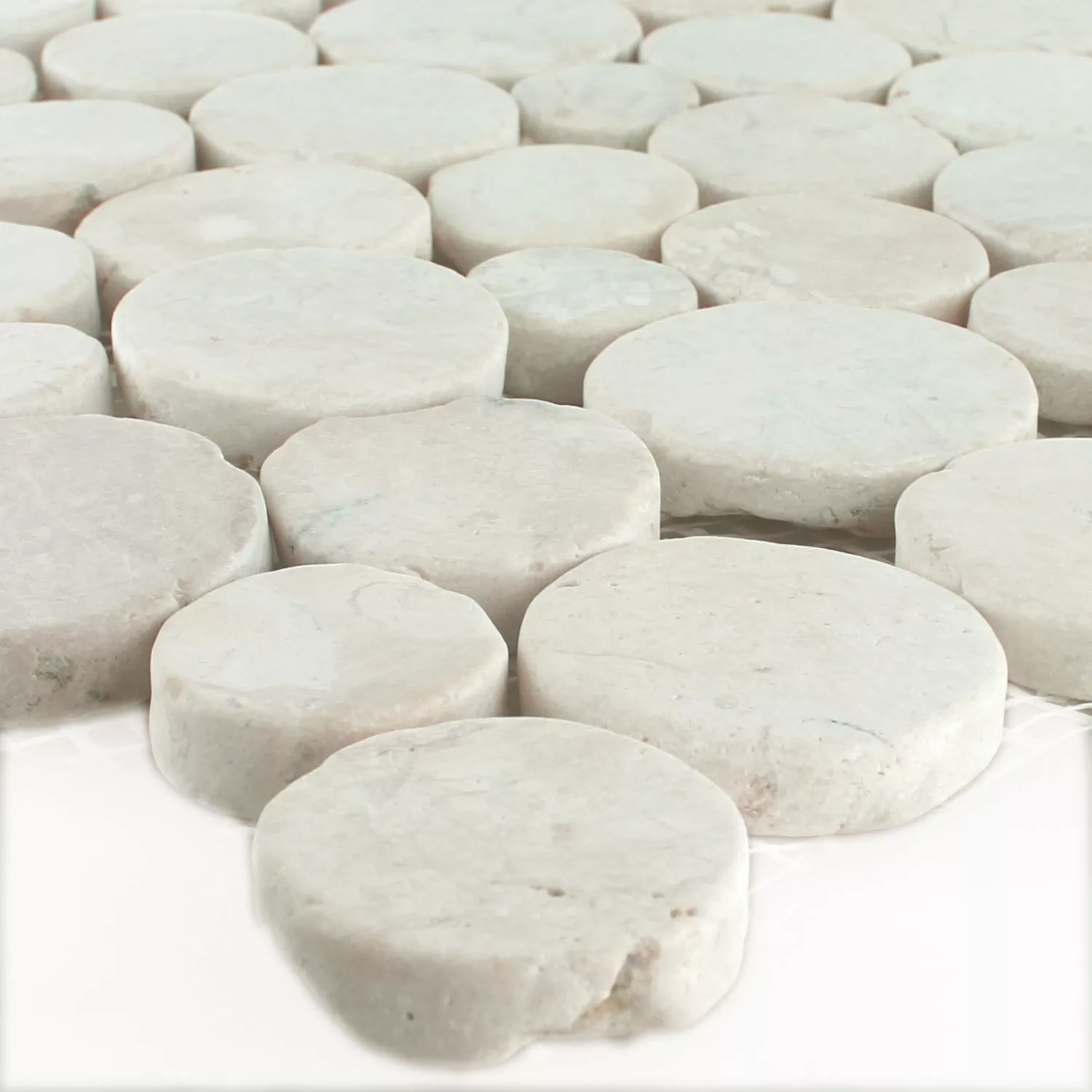 Designalternativer med elvesteiner natursteinmosaikkfliser Coin Round White