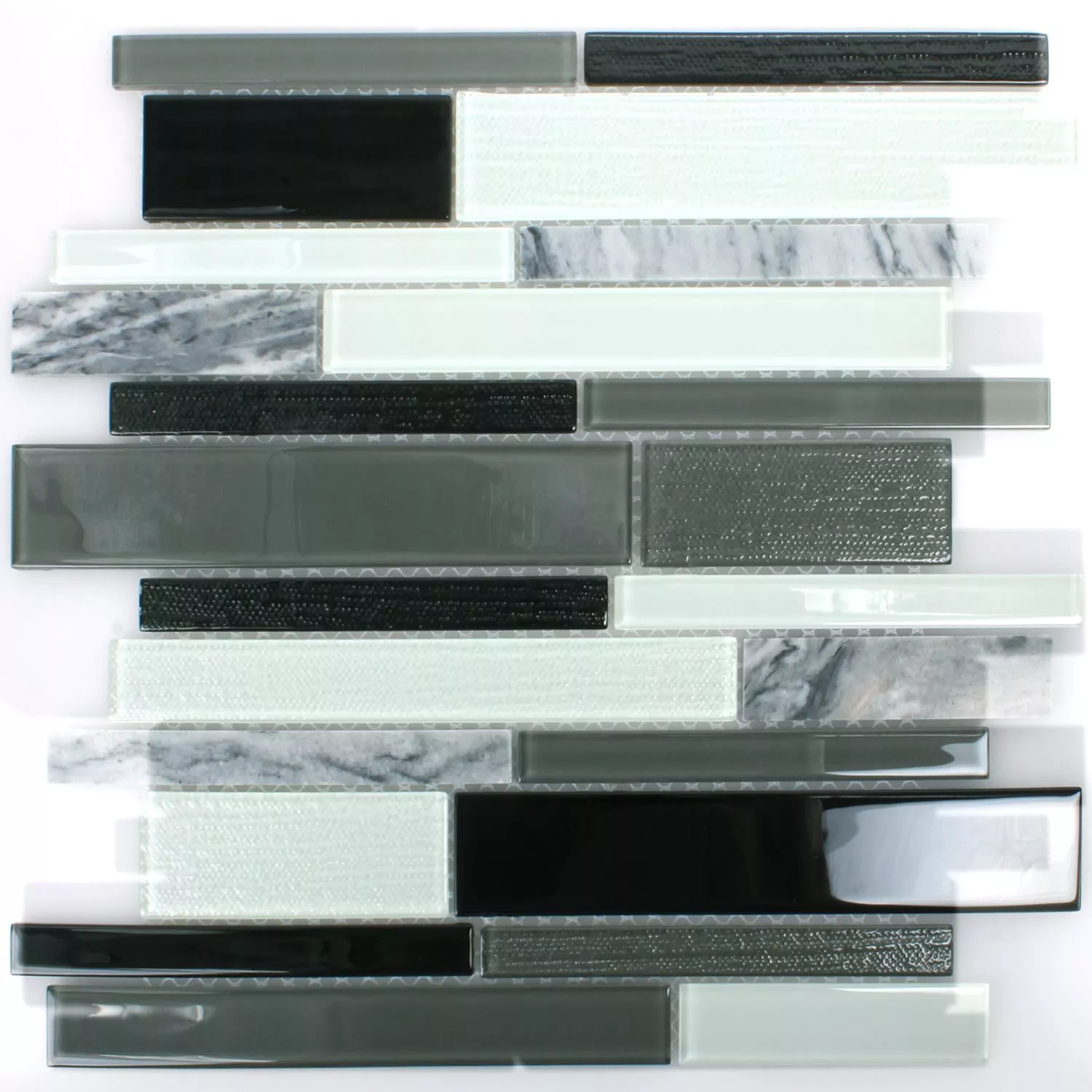 Mosaikkfliser Glass Naturstein Kalamos Svart Hvit