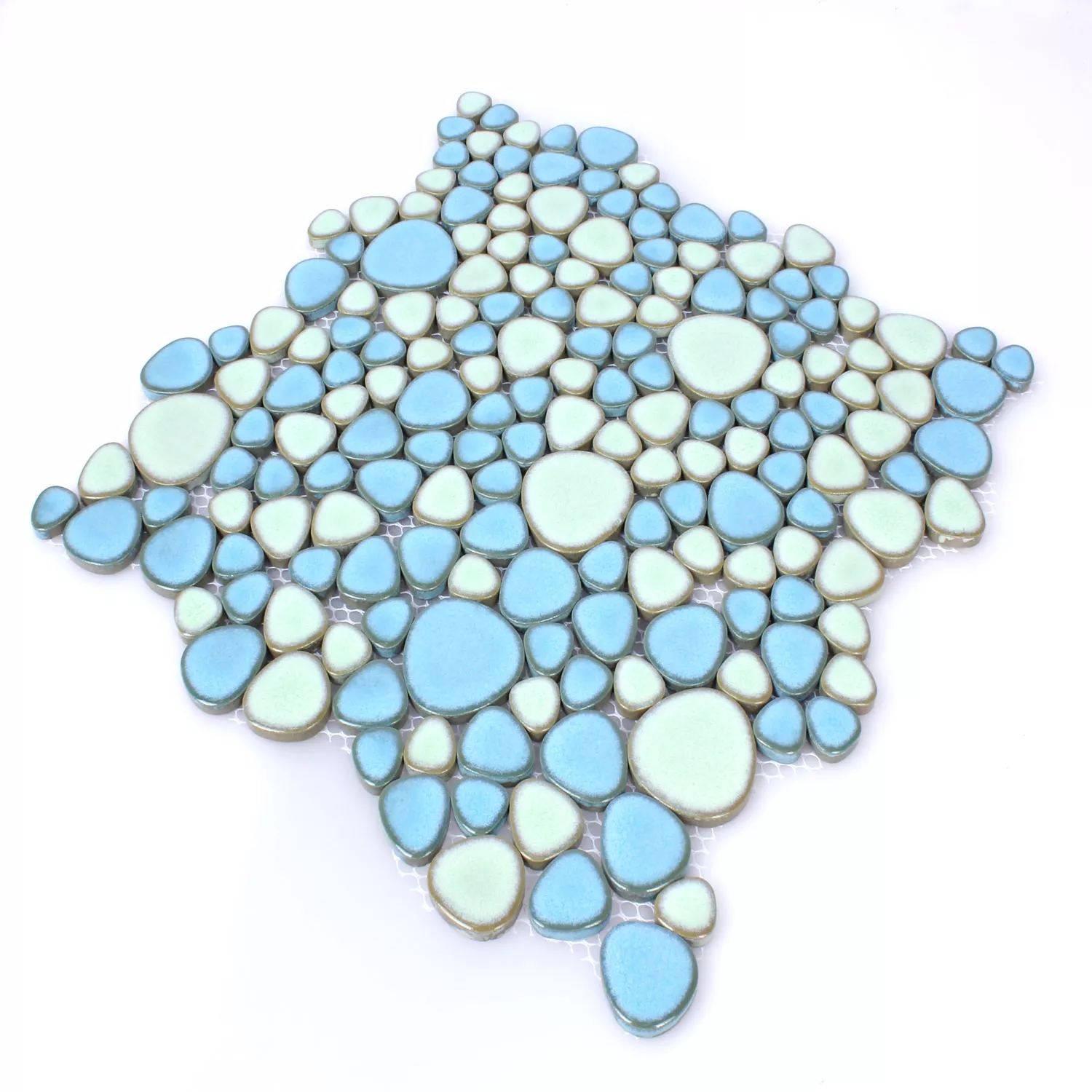 Mosaikfliesen Keramik Flusskiesel Optik Türkis