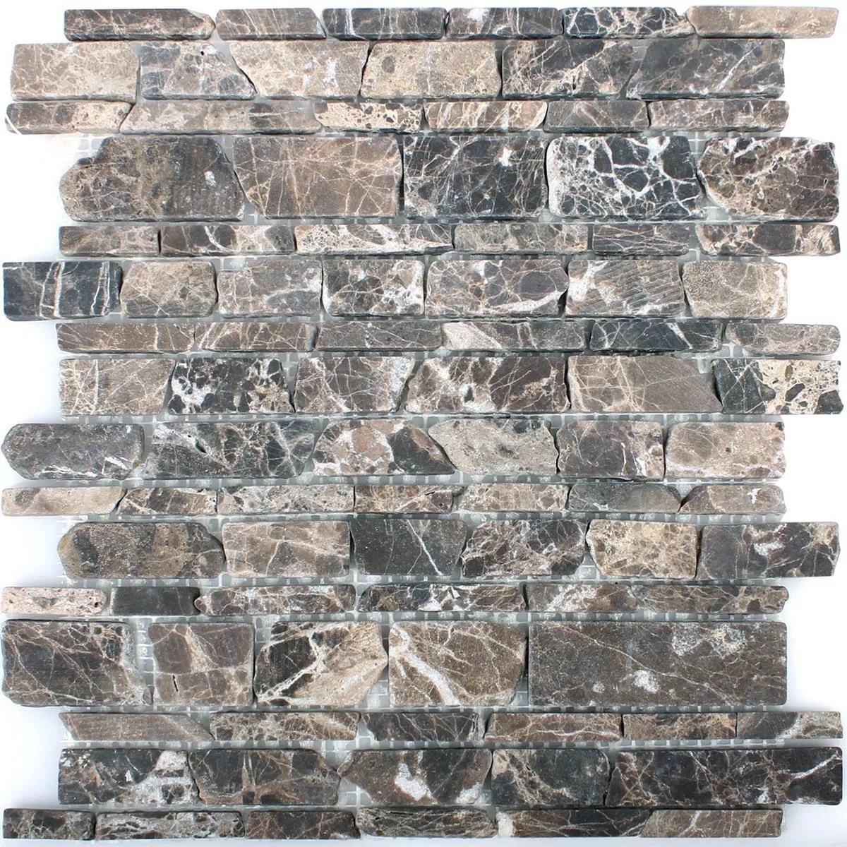 Havel Brick Castanao marmormosaikkfliser gir badet et rustikk, naturlig utseende. De er tilgjengelige i to varianter: Castanao og Castanao Biancone. Dette er på den ene siden brun-svarte toner og på den andre siden beige toner. Disse naturlige marmorflisene kan brukes til å sette spennende aksenter. Uansett er de ekte blikkfang på badet.