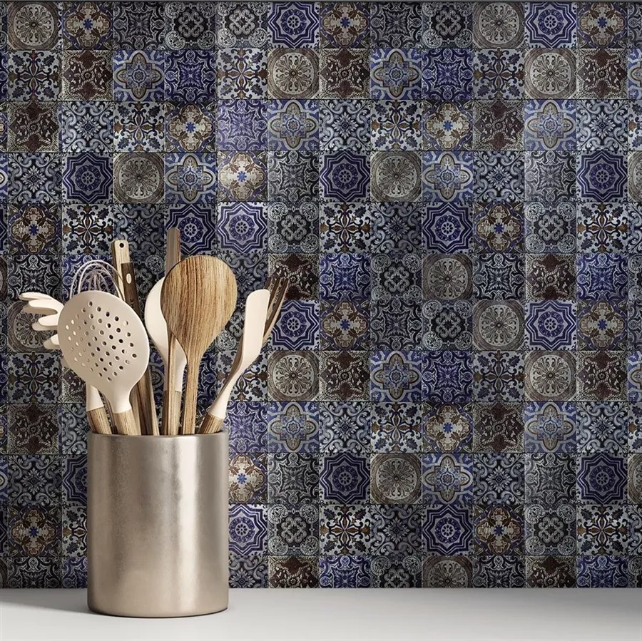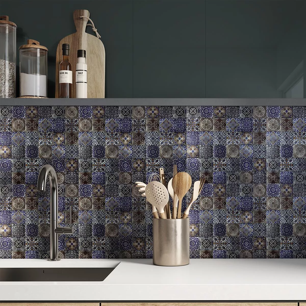 Legg til et snev av vintage sjarm til veggene dine med Metal Retro Livorno selvklebende mosaikkfliser. Disse firkantede flisene i bronse, blått og brunt imponerer med et stilig retroutseende og en matt overflate. Med en flisstørrelse på 30,5x30,5cm og en steinstørrelse på 50,8x50,8mm, tilbyr de en ideell løsning for kjøkken, bad, stuer og andre innendørsområder, selv i våtrom. De selvklebende egenskapene muliggjør rask og enkel montering. Laget av høykvalitets metall og aluminium, de 4 mm tykke flisene er slitesterke og enkle å håndtere. Hver pakke dekker et område på 0,093 m² og veier 0,46 kg. Bring tidløs stil og praktisk funksjonalitet til hjemmet ditt.