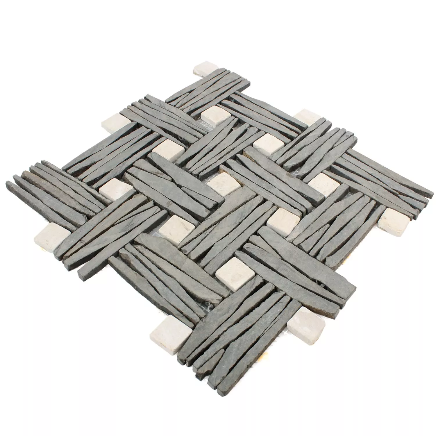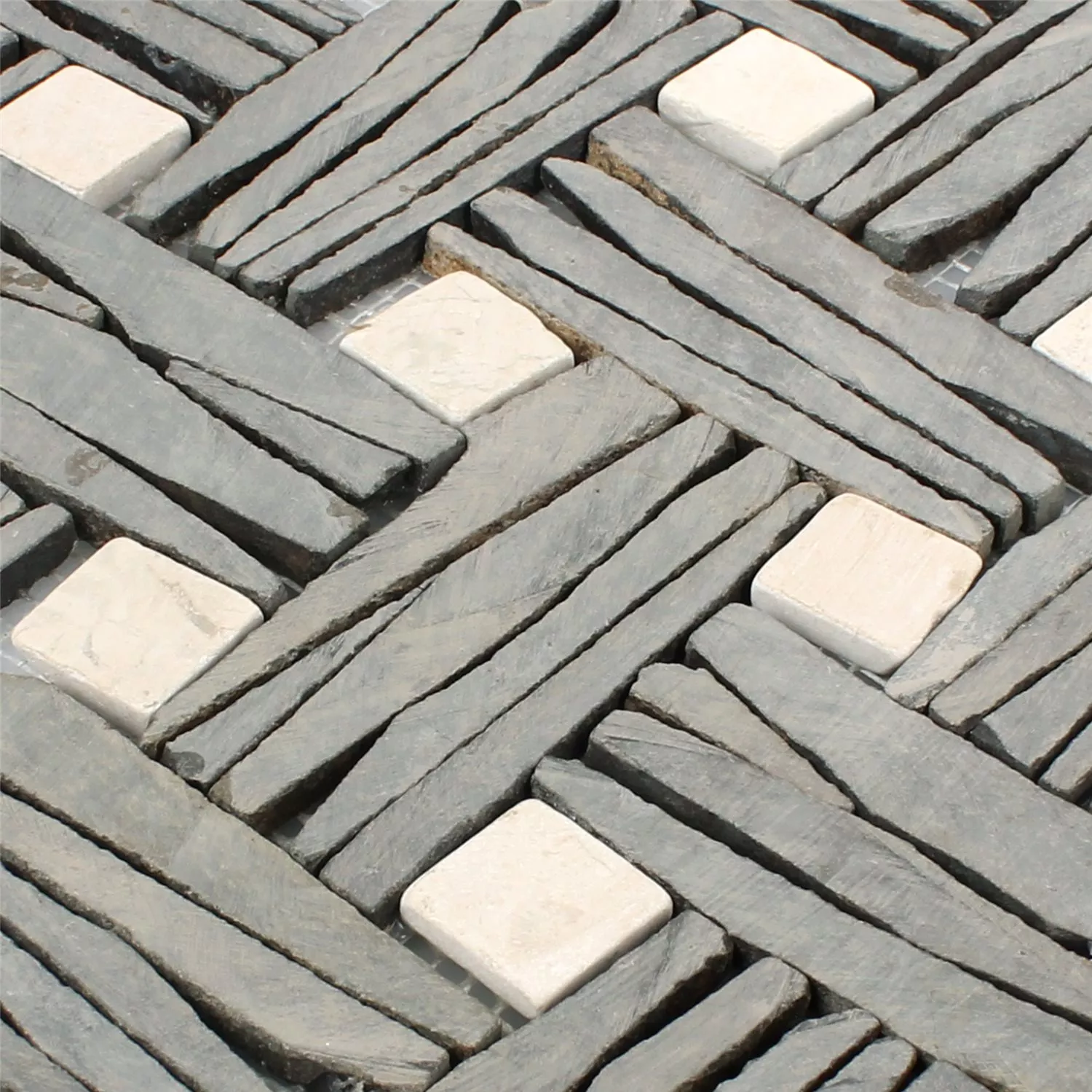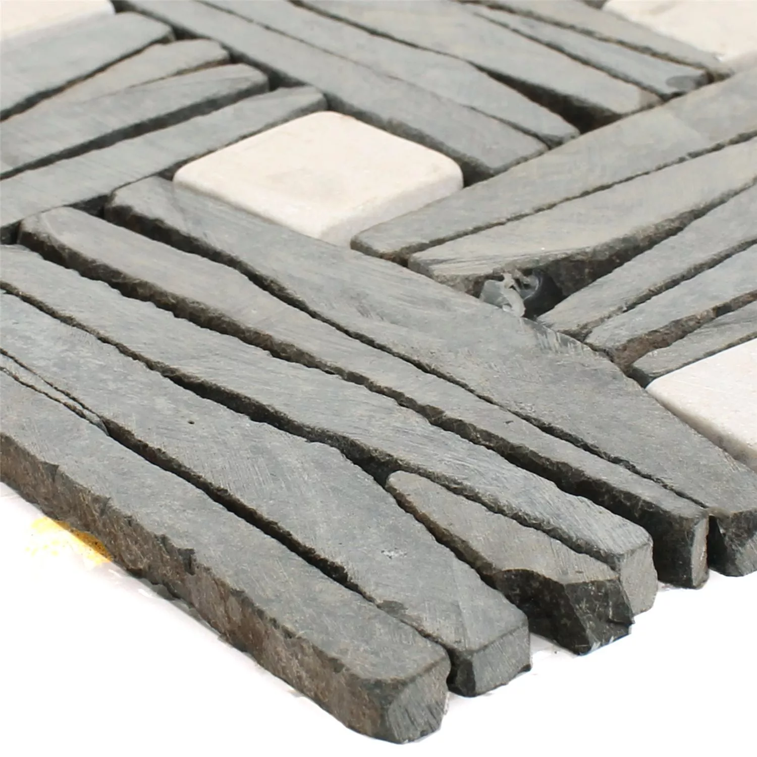 Skifer er forbundet med mange gode egenskaper og det samme gjelder marmoren i disse mosaikkflisene. Disse mosaikkflisene er veldig spesielle med tanke på strukturen og effekten av mønsteret. På den ene siden fremstår disse flisene veldig eksklusive og elegante, materialet er umiddelbart gjenkjennelig og fargene som brukes fremstår som svært puristiske. Resultatet er et naturlig utseende som viser hvor god brukerens smak er når de velger disse flisene laget av naturlige materialer. Nøyaktig installasjon i kompositten er enkel å oppnå.