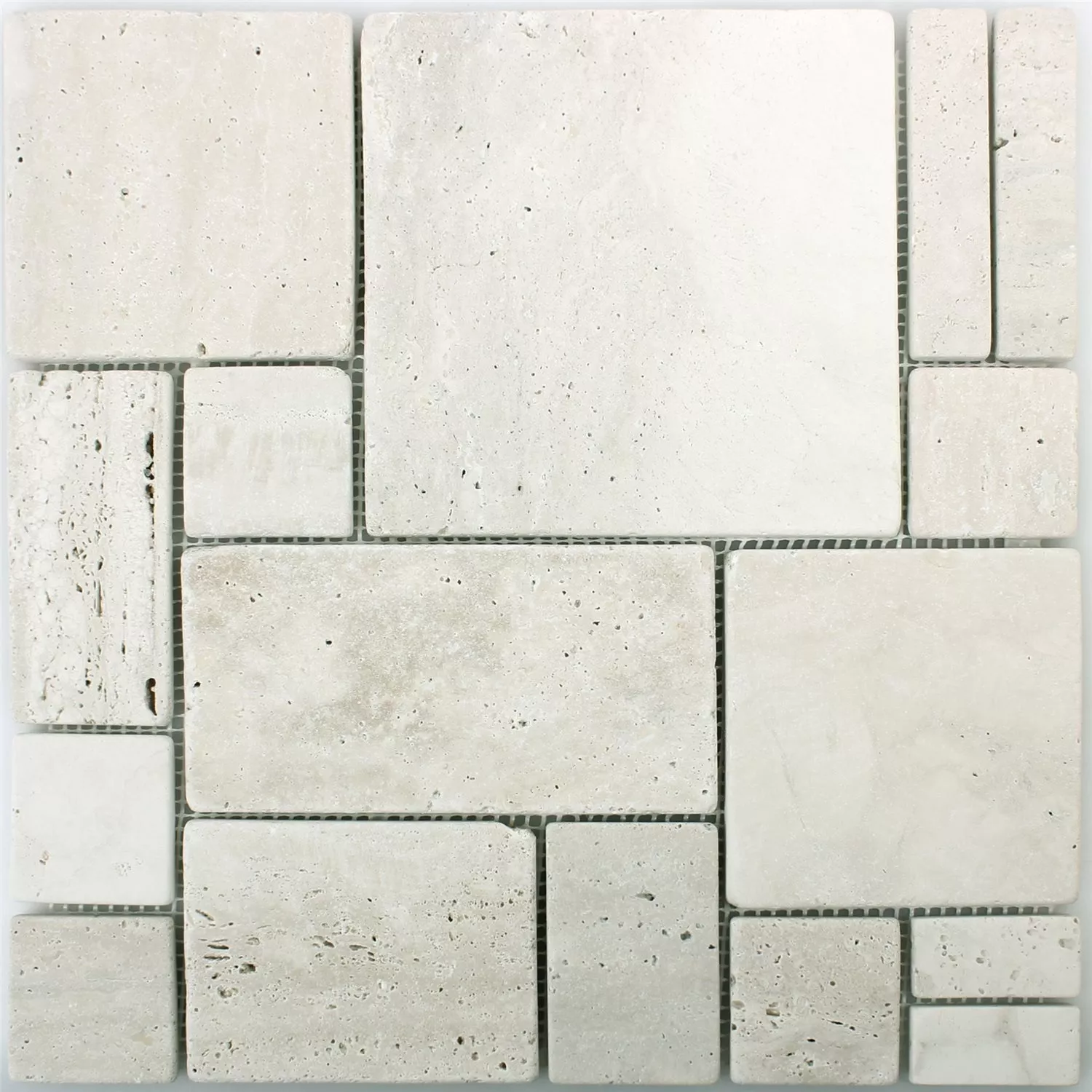 Naturstein er veldig trendy. Disse inkluderer spesielt disse elegante mosaikkfliser. Blandingen av fliser inkluderer et stort antall forskjellige størrelser. Dette gjør en spennende blanding mulig. Flisene passer til alle rom som ikke er fuktige. Travertinsteinen leveres helt naturlig. De naturlige porene i steinen gjør den lettere enn andre merker. Samtidig løsner porene og gir mosaikkflisene umiskjennelige strukturer.
