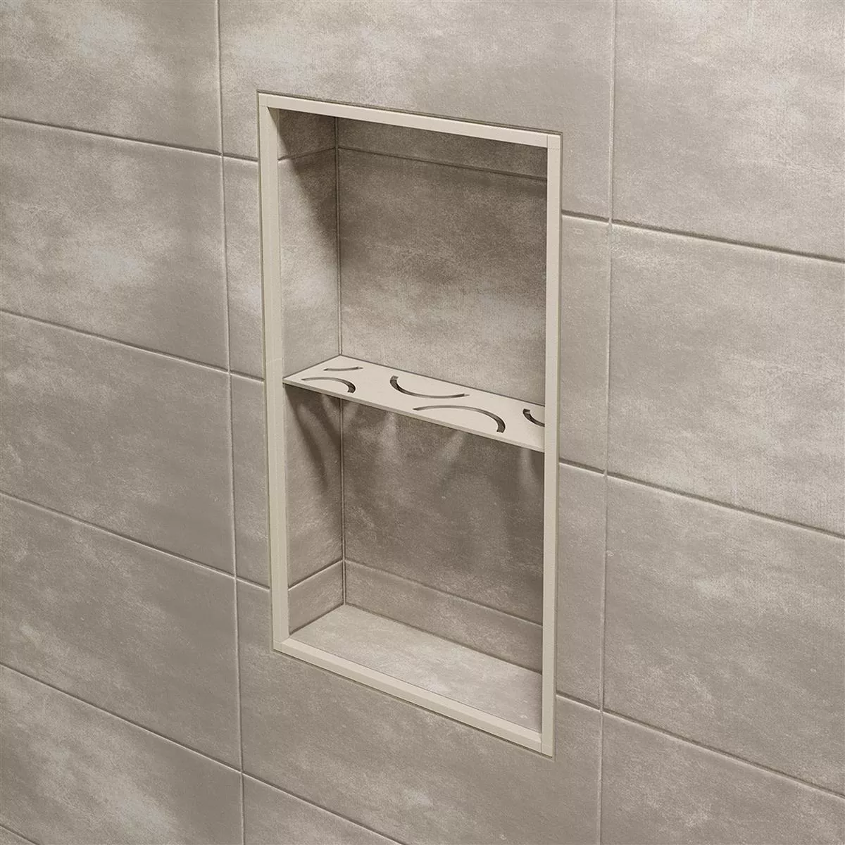 Schlüter-SHELF-N-S1 Elfenben Rektangulær nisjevegghylle Med Schlüter-SHELF-N-S1 kan du utstyre den prefabrikkerte Schlüter-KERDI-BOARD-nisjen med en nøyaktig passende hylle mens du legger fliser. Det er ikke alt: Du har også maksimal fleksibilitet når det gjelder materiale og design. Nisjevegghyllen av høy kvalitet er laget av enten børstet rustfritt stål eller teksturbelagt aluminium.