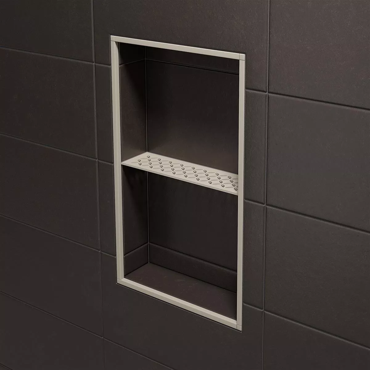Schlüter-SHELF-N-S1 Kremfarget Rektangulær Nisje Vegghylle. Med Schlüter-SHELF-N-S1 kan du utstyre den prefabrikkerte Schlüter-KERDI-BOARD nisjen med en perfekt passende hylle under flisleggingen. Og det er ikke alt: du har også maksimal fleksibilitet når det gjelder materiale og design. Denne høykvalitets nisjevegghyllen er tilgjengelig i enten børstet rustfritt stål eller teksturert lakkert aluminium.