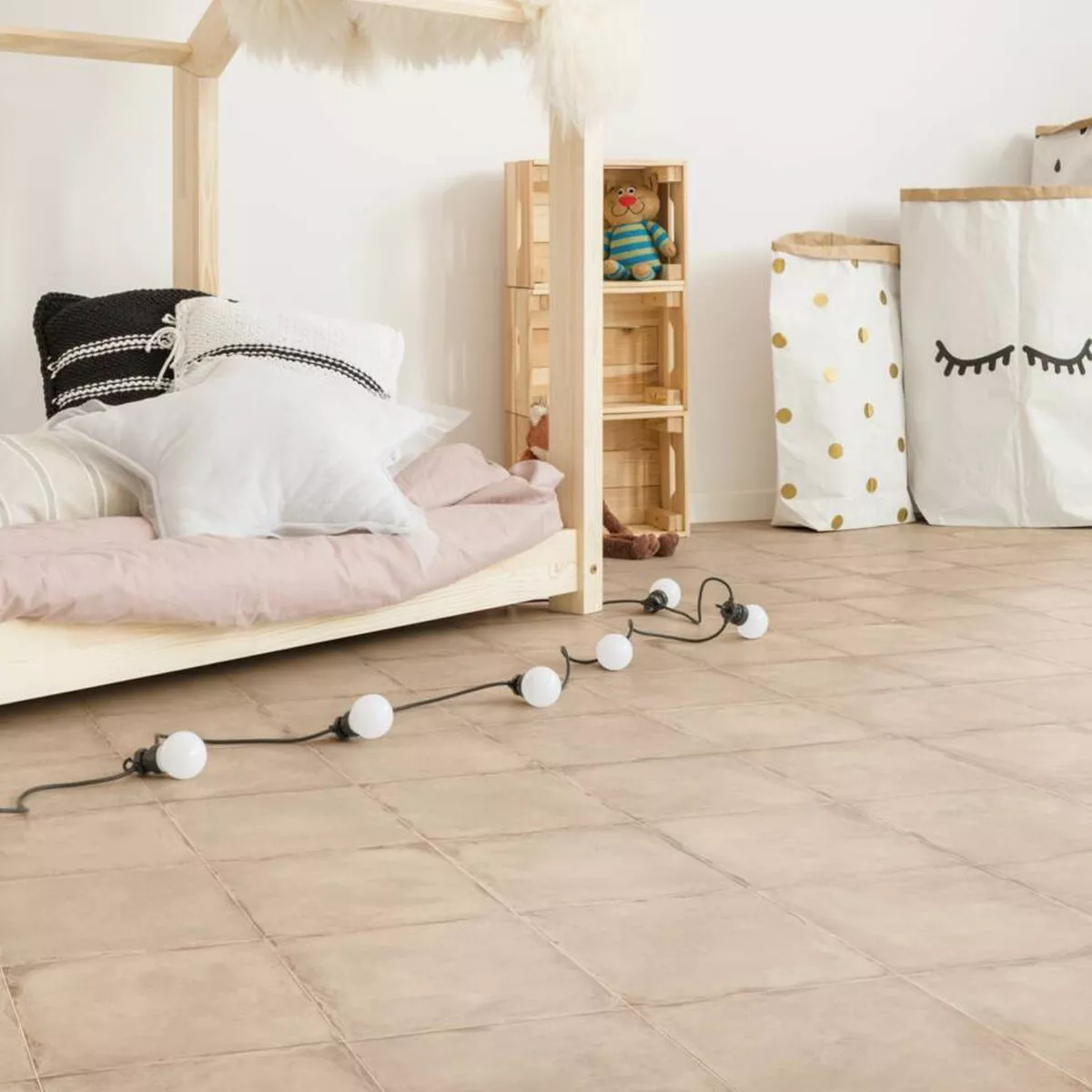Disse moderne gulvflisene i porselen og steintøy imponerer ikke bare med sine tekniske egenskaper, men også med sitt utseende. Den matte, teksturerte overflaten skaper en innbydende atmosfære i ethvert rom. Dessuten kommer flisene i en behagelig og allsidig beige tone som integreres harmonisk i ethvert fargevalg.