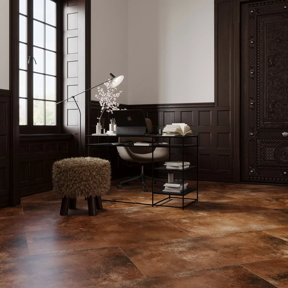 Oregon-gulvflisen i steingods i porselen kombinerer moderne design med høy funksjonalitet. Den varme brune fargen med et metallisk utseende gir hvert rom et edelt og samtidig industriell preg. Takket være den mattglaserte overflaten skapes et elegant utseende som skaper en stilig atmosfære i stuen så vel som på kjøkkenet eller badet.