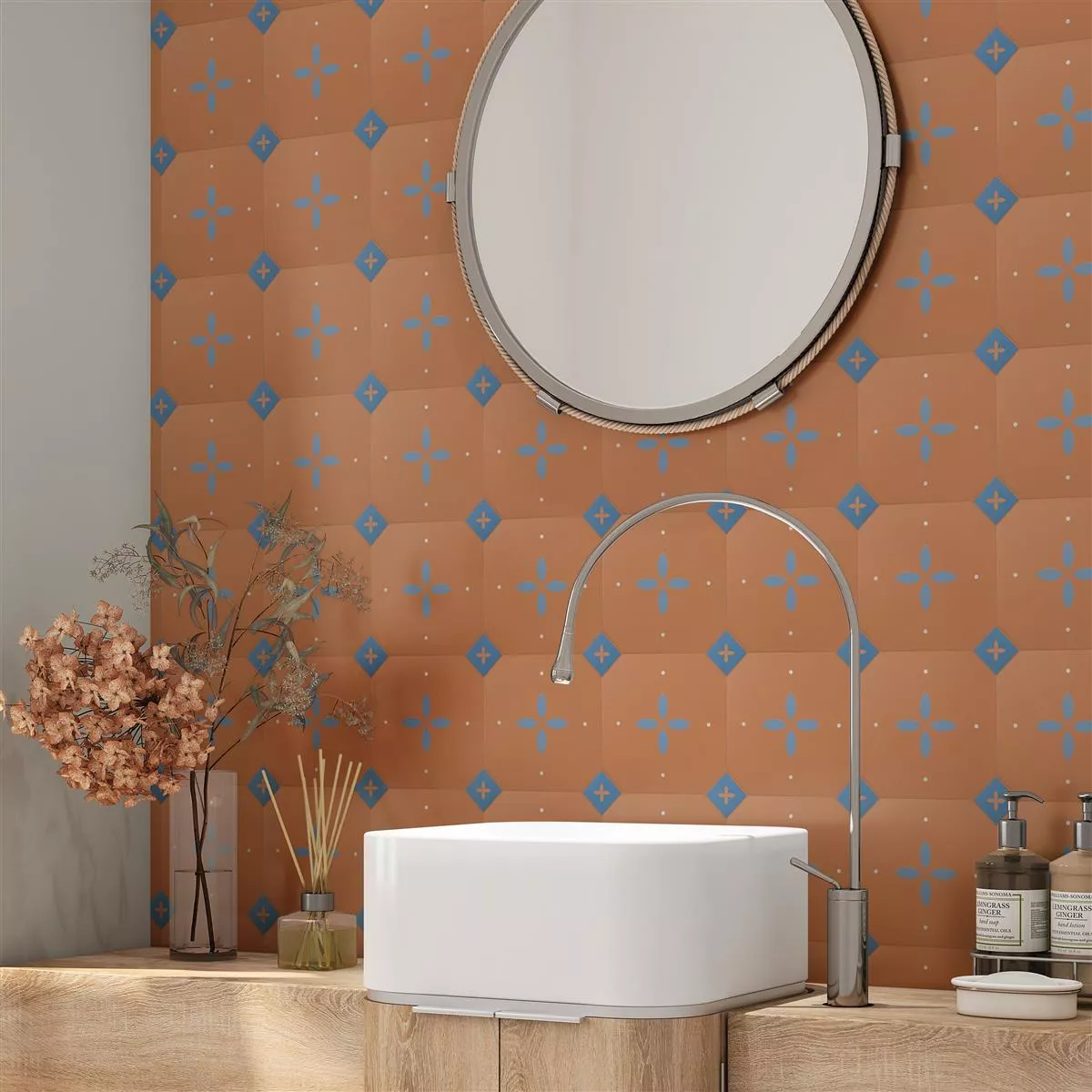 Die Feinsteinzeug Fliesen Genexia Decor Ocker Octagon verleihen Ihrem Zuhause einen Hauch von Vintage Charme in Ocker. Mit ihrem einzigartigen Octagon-Format und der Retro-Blumenoptik sind sie perfekt für Wand- und Bodenbeläge in verschiedenen Räumen.