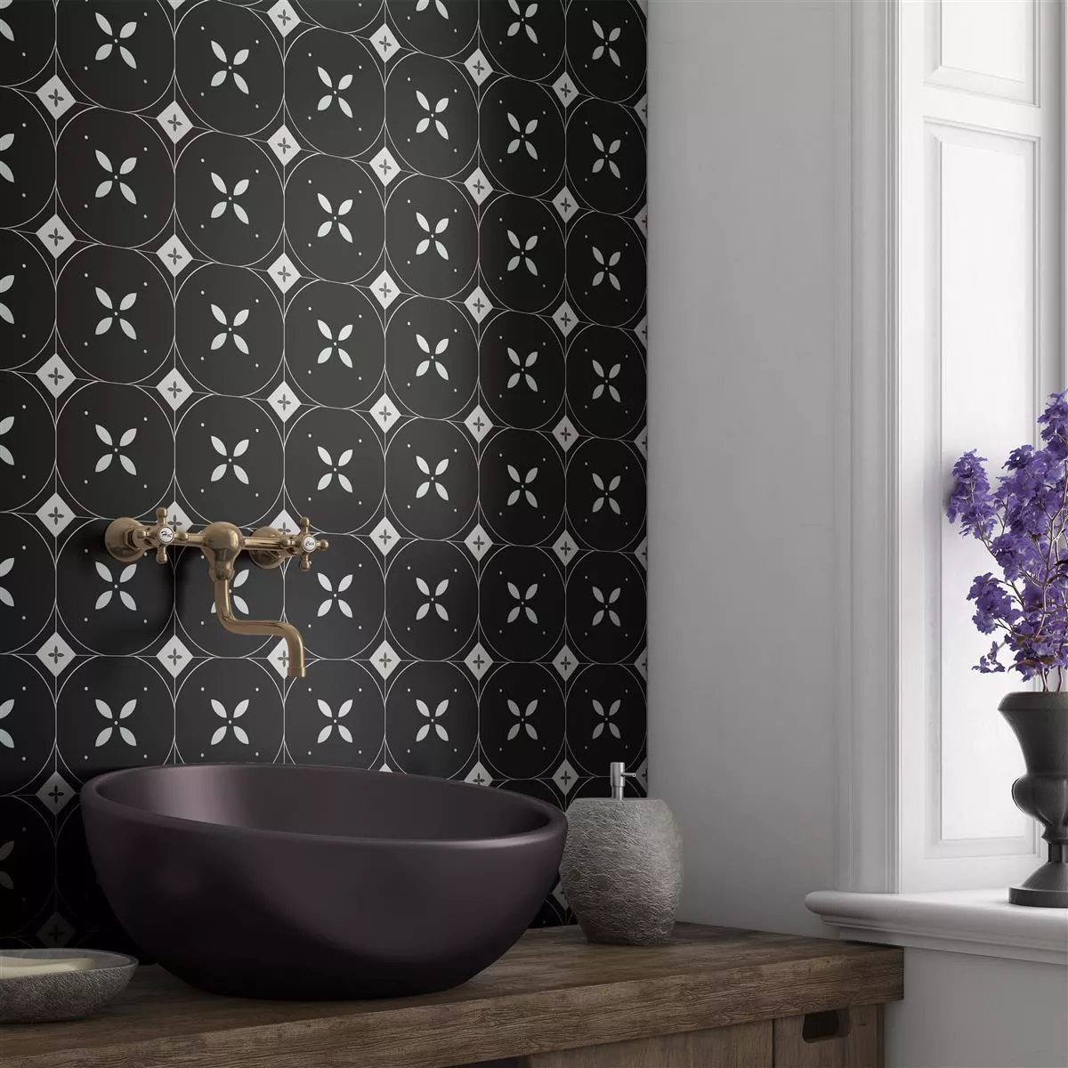 Porselens Steintøy Fliser Genexia Svart Hvit Decor 2 Oktagon 20x20cm