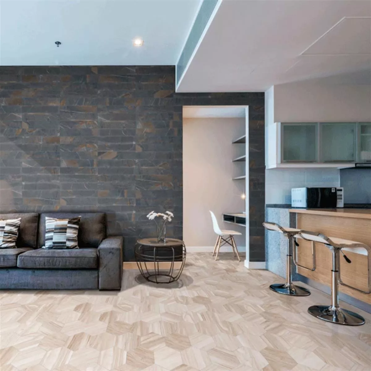 Gi rommene et snev av naturlig skjønnhet og tidløs sofistikering med Hexwood Hexagon Beige porselenssteintøyfliser. Enten som vegg- eller gulvfliser, gir disse allsidige flisene stil og funksjonalitet til hjemmet ditt.