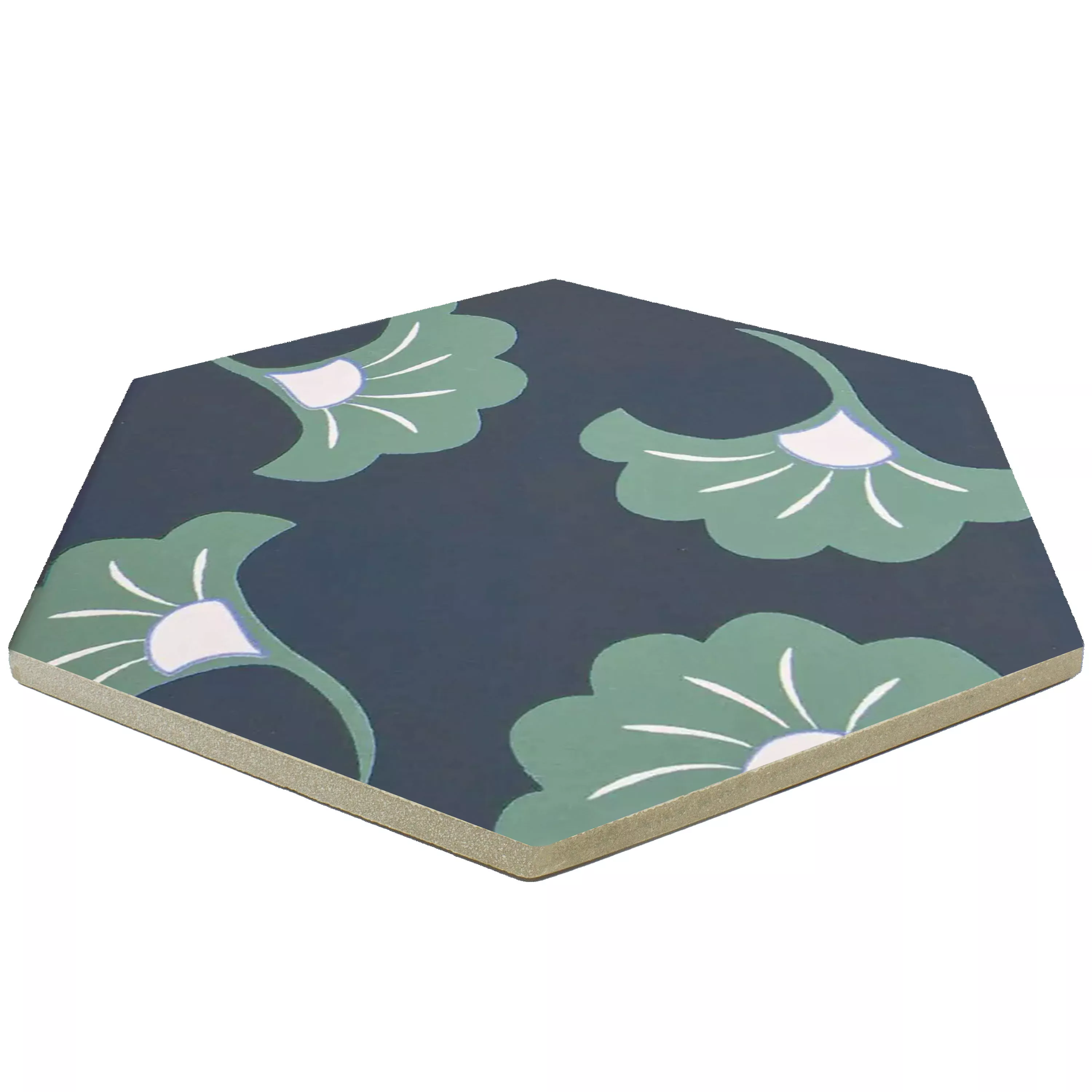 "Modena Hexagon Decor 3" porselenssteintøyfliser kombinerer kunst og funksjonalitet. Med en tykkelse på 10 mm er de ideelle for våtrom, dusjer, bad, kjøkken, stuer og innendørs områder. Den matte overflaten og det dekorative motivet i blått og grønt gir flisene en unik estetikk.