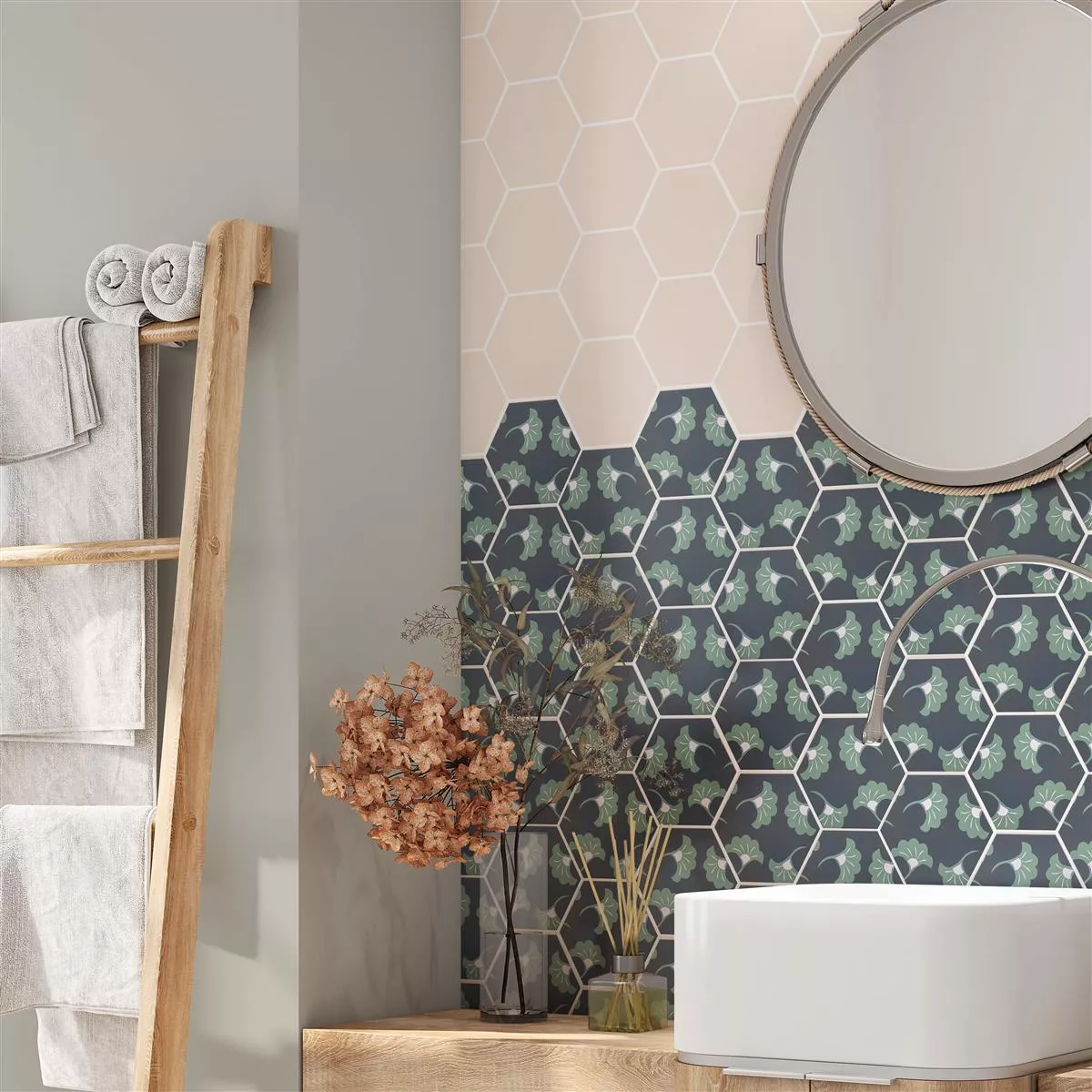 Porselens Steintøy Fliser Modena Sekskant Decor 3