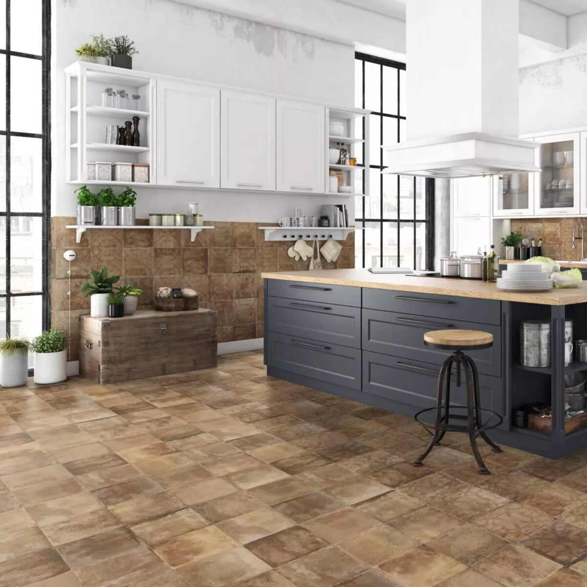 Med sin matte, teksturerte overflate i mørkebrun, passer de sømløst inn i ethvert interiørtema. Dessuten er Queens-flisene robuste nok til å brukes som kommersielle fliser i områder med mye trafikk.