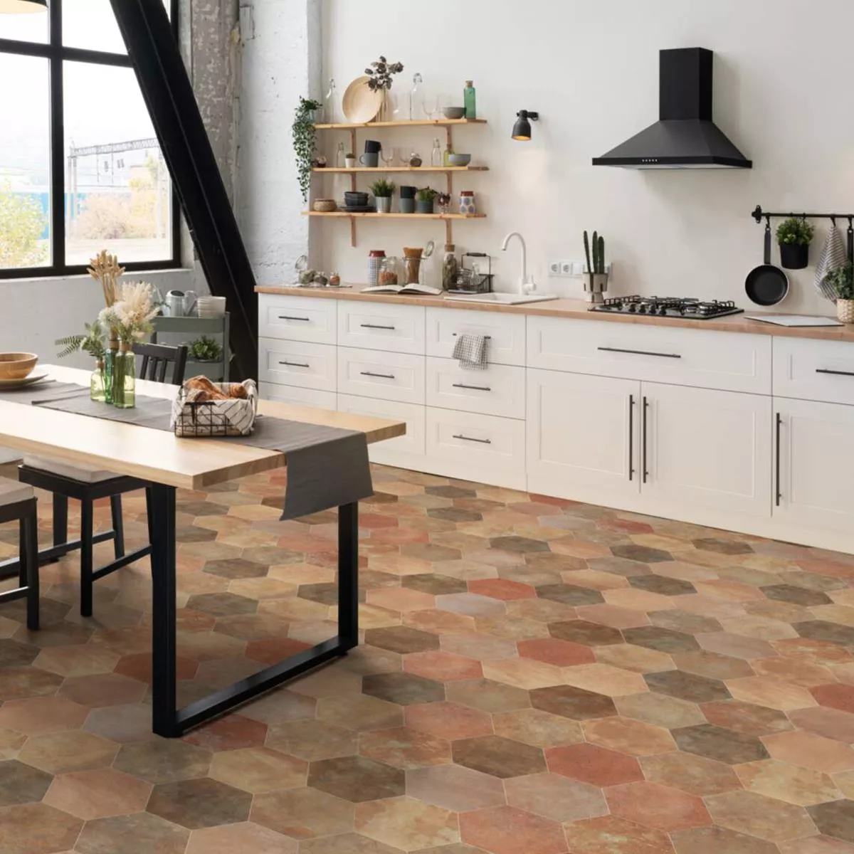 Santiago-gulvflisen er tilgjengelig i fargen Cotto og bringer varme og eleganse til ethvert rom. Enten det er i stuen, kjøkkenet eller badet, passer denne flisen perfekt til din stil og dine behov.