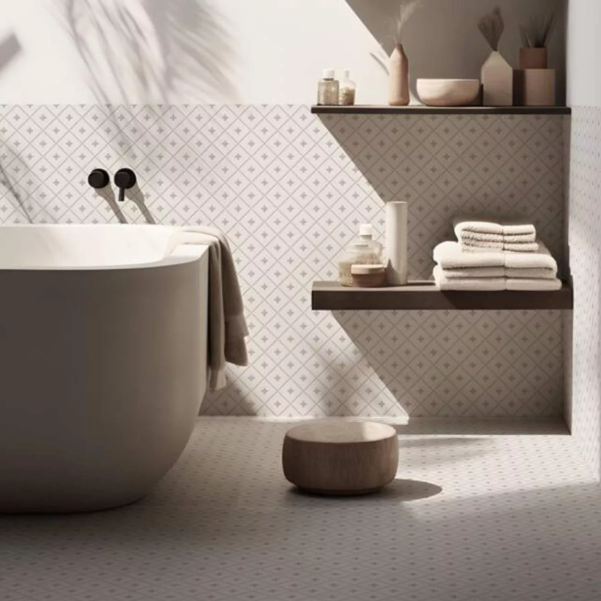 Design av dusjvegger og dusjgulv med Skyros-fliser