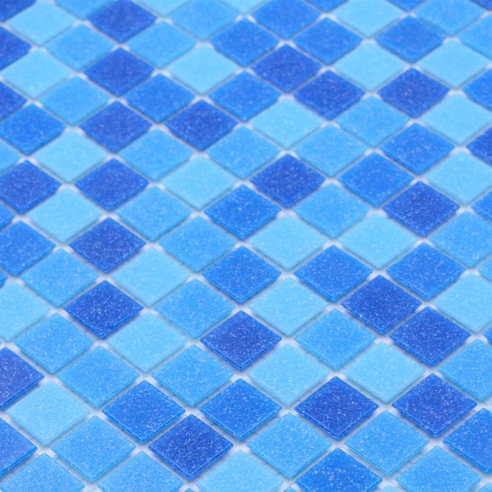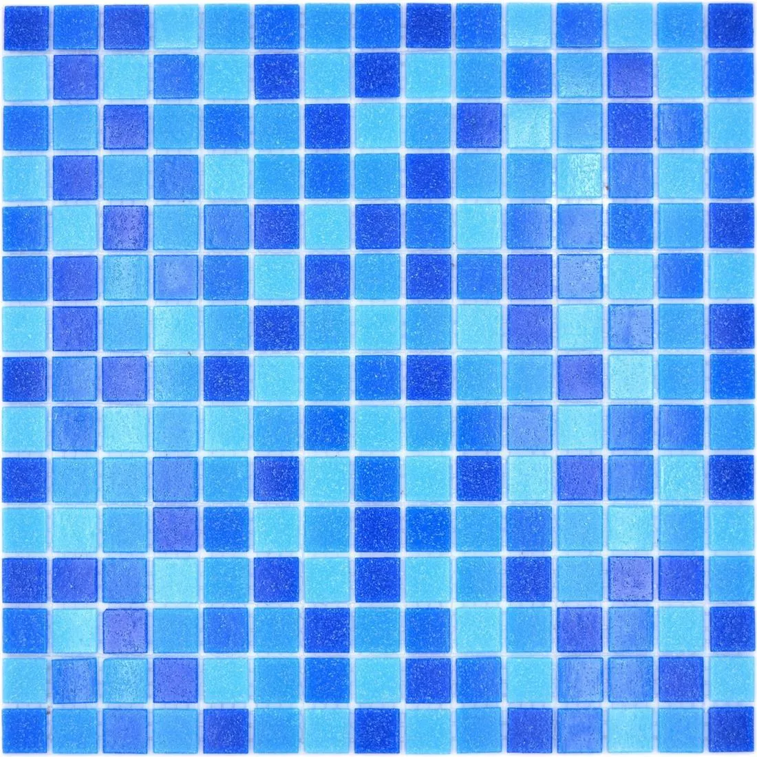 Våre fliser for svømmebassenget ditt: Den intense blå - lyseblå blandingen vil forvandle bassenget til et attraktivt basseng fordi vannet har en fantastisk klar farge. På avstand virker det som om du har hentet Nordsjøen hjem. Det er mosaikkfliser som er papirlimt på individuelle matter slik at monteringen går raskt. Dette krever ikke bare en profesjonell hånd. De firkantede mattene kan enkelt legges i bassenget. Stoffet kan kuttes med en kniv og justeres til ønsket størrelse.