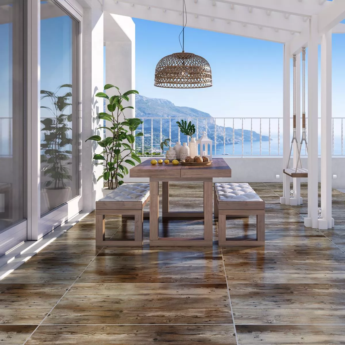 Disse flisene er laget av høykvalitets porselenssteintøy, og kjennetegnes av deres holdbarhet og motstand. Den matte, glaserte overflaten skaper et autentisk treutseende som ser flott ut både innvendig og utvendig. Den høye slitestyrken (sliteklasse 4) og sklisikkerheten til R10 sikrer ekstra sikkerhet og holdbarhet.