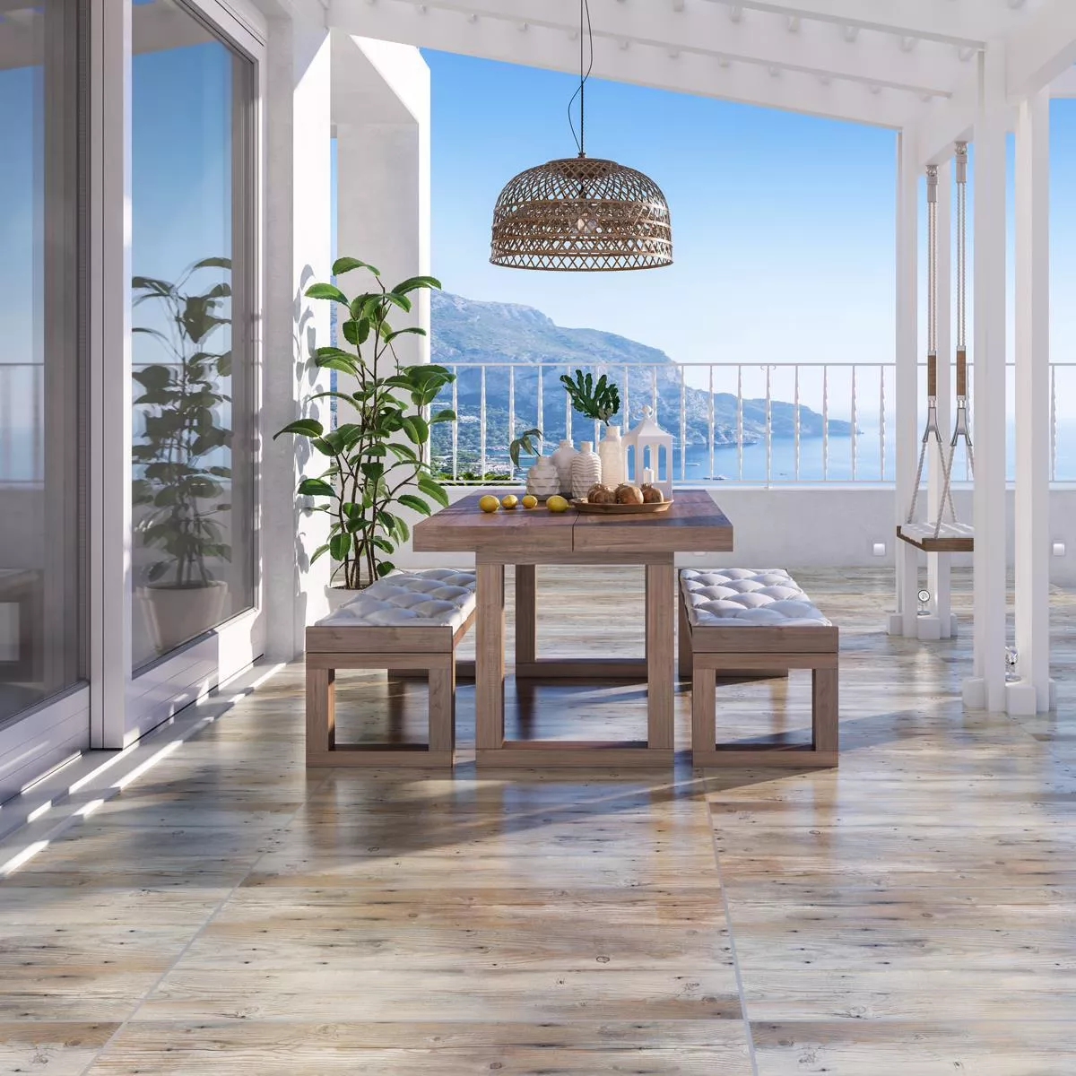 Panelene er laget av høykvalitets porselenssteintøy, som er kjent for sin holdbarhet og motstandsdyktighet. Den matte, glaserte overflaten gir et autentisk treutseende som skaper en innbydende atmosfære både innendørs og utendørs. Disse flisene er slitesterke (sliteklasse 4) og har en sklisikkerhet på R10, noe som gjør dem spesielt sikre og holdbare.