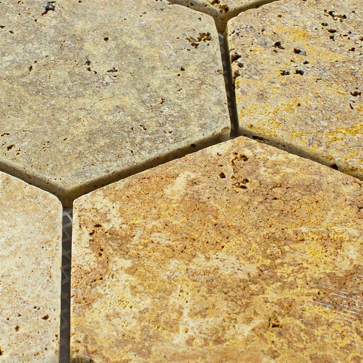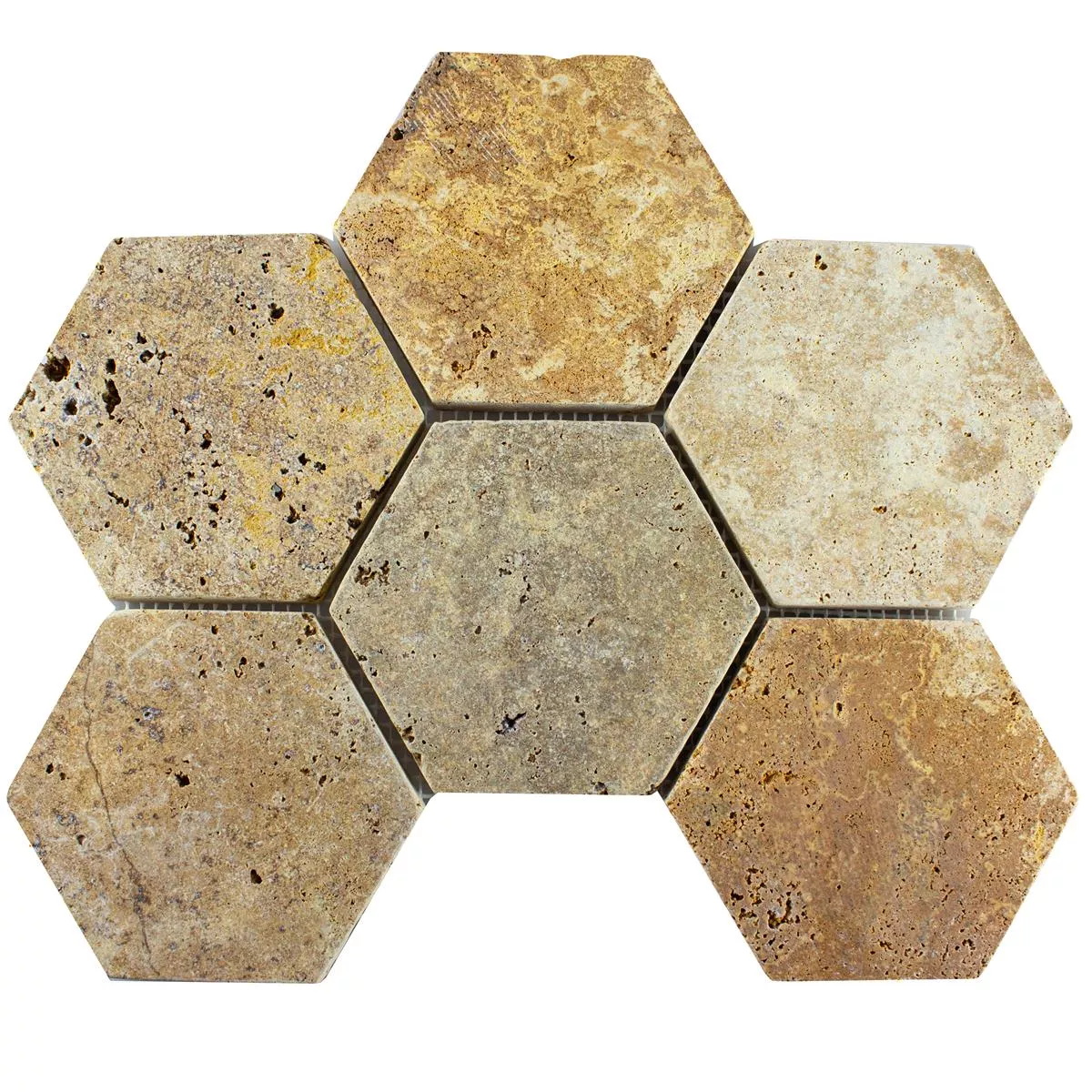 Travertin Naturstein Mosaikkfliser Mercado Sekskant Gull