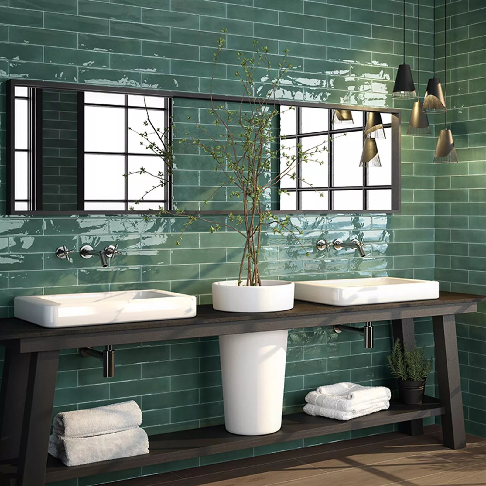 Conway veggflis vil fortrylle badet ditt og har et vakkert, bølget overflatemønster. Denne veggflisen i fargen smaragdgrønn, overflaten på flisene er skinnende og materialet til denne veggflisen er laget av langvarig steintøy. Materialet er meget robust og overflatemønsteret får hvert bad til å skinne.