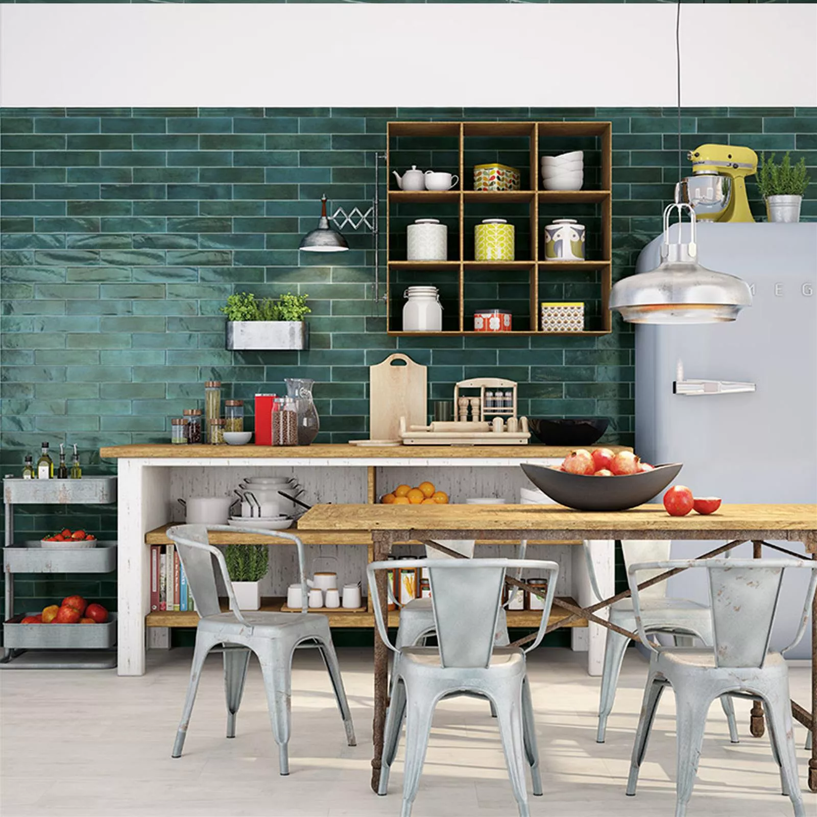 Veggfliser Conway Bølgete 7,5x30cm Smaragdgrønn
