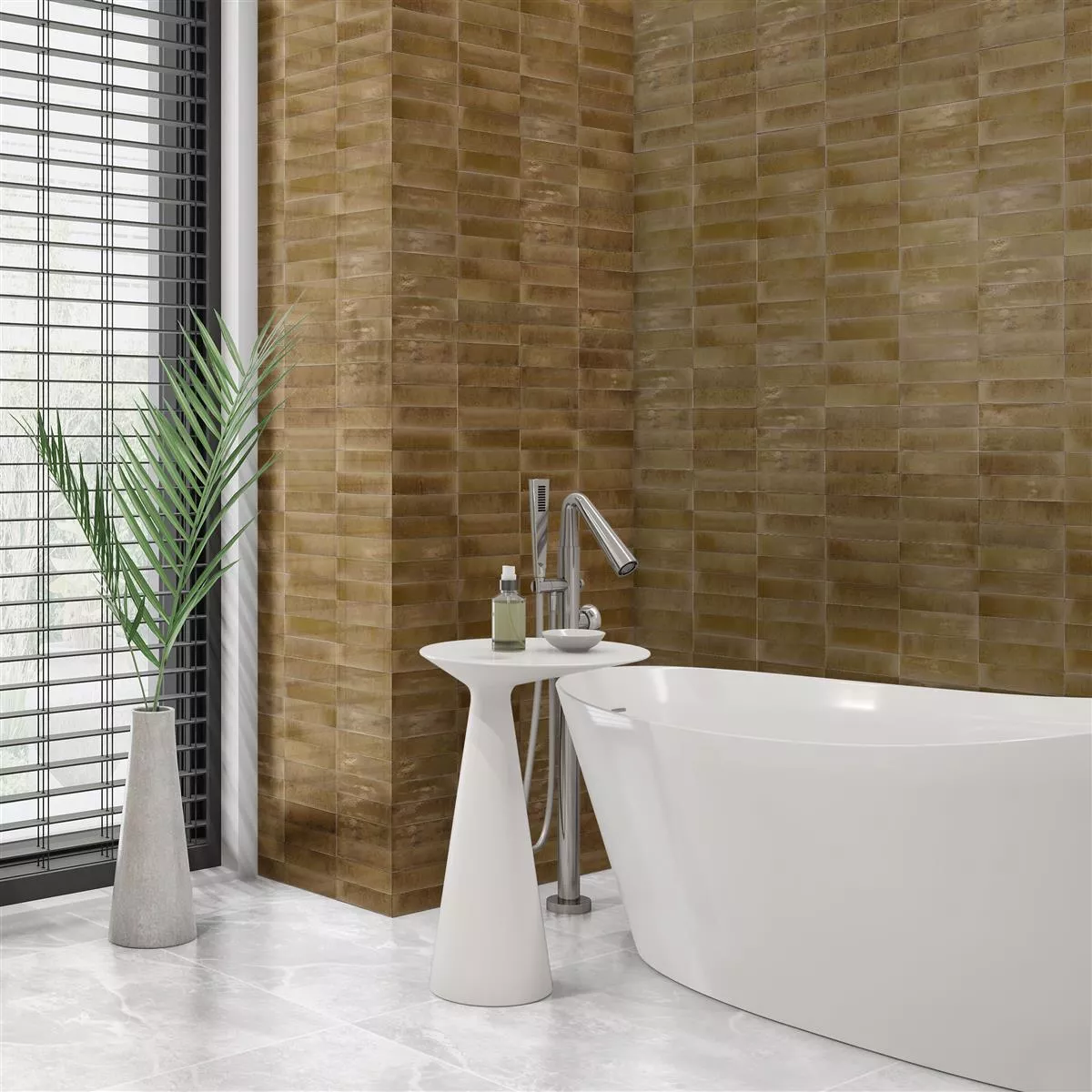 Veggfliser Laguna Glitrende Bølgete Brun 6x24cm