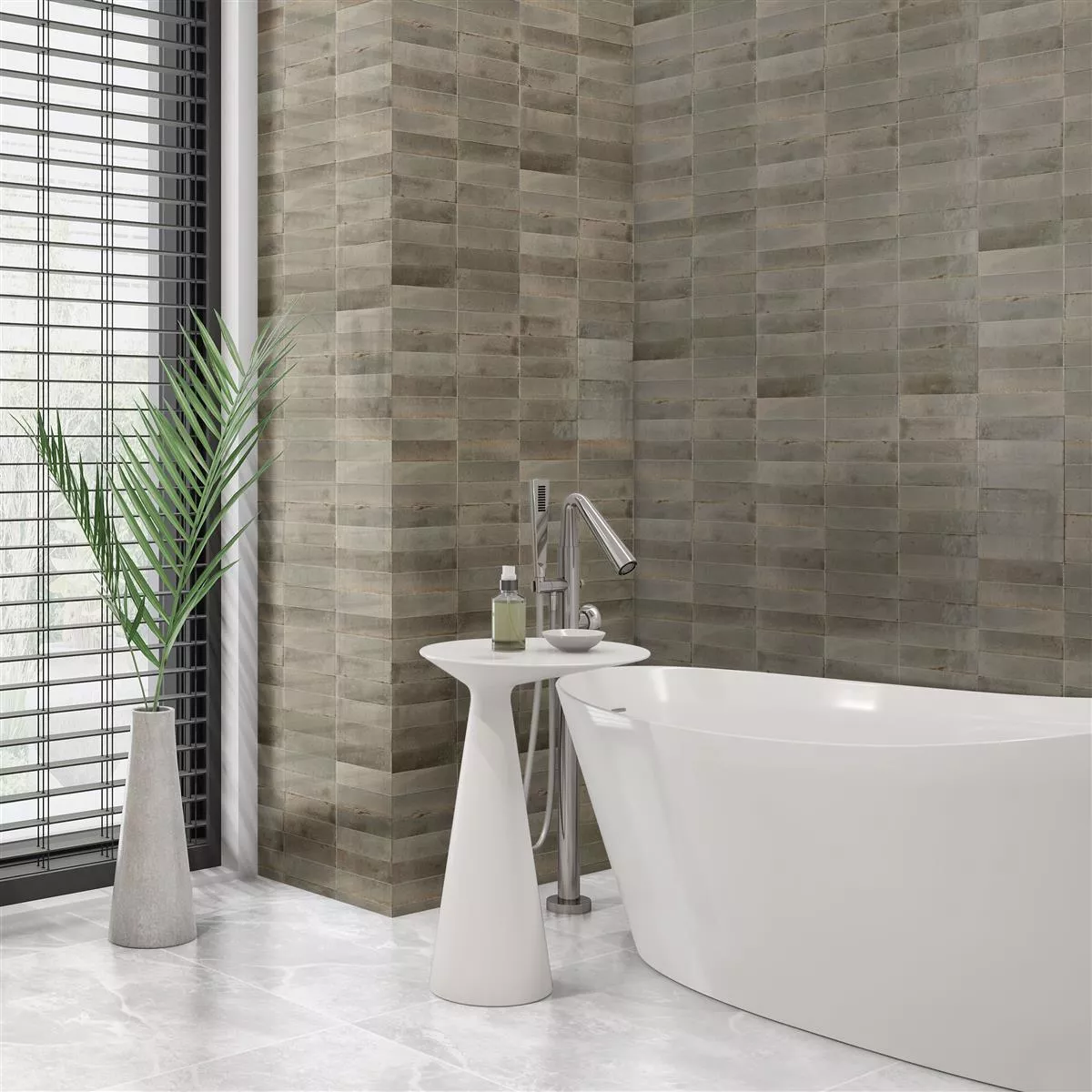 Veggfliser Laguna Glitrende Bølgete Mokka 6x24cm