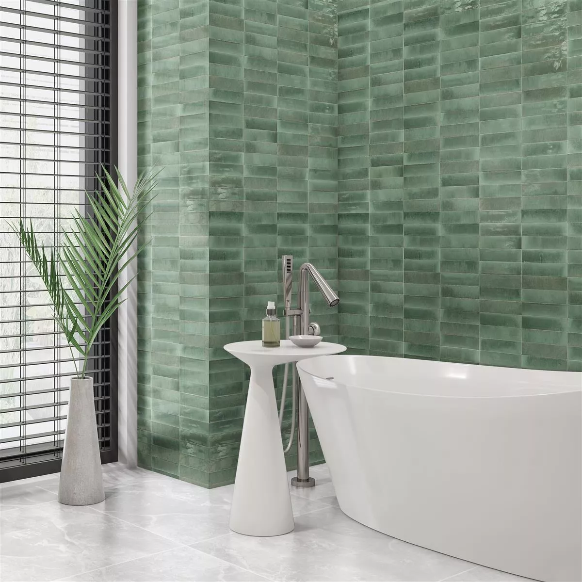Veggflisene "Laguna" i turkis gir et friskt og livlig element til rommene dine og er laget av høykvalitets porselenssteintøy. Deres glaserte, skinnende og bølgete overflater reflekterer lyset vakkert og skaper en elegant, livlig atmosfære. Vintage-utseendet og den ikke-korrigerte kanten gir disse flisene en klassisk, men likevel moderne karakter.