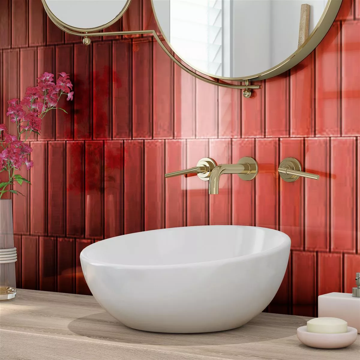 Veggfliser Pascal Glitrende Innsiden Fasett Rød 7,5x30cm