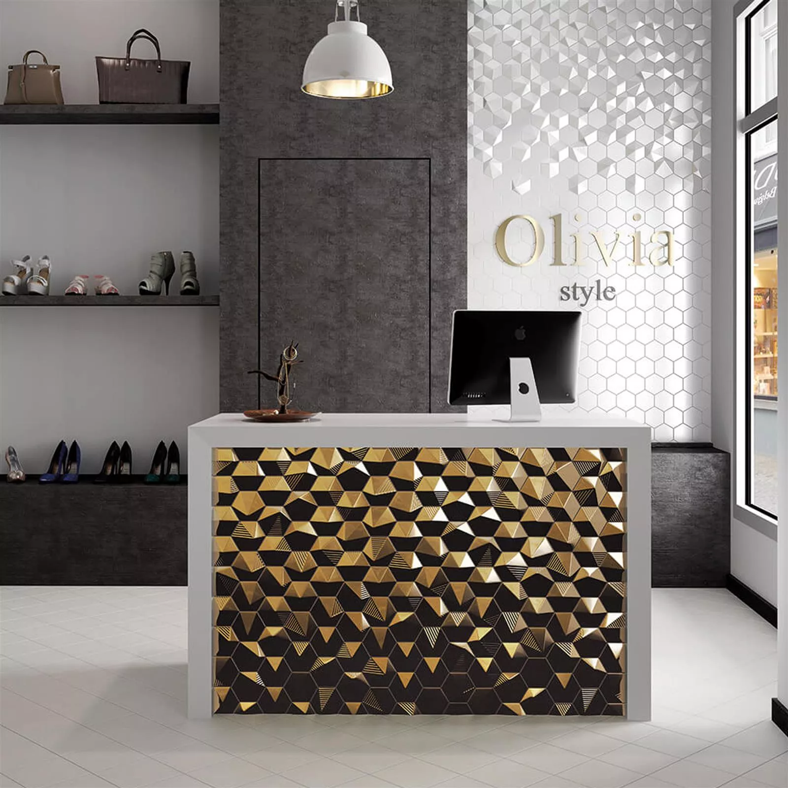 Den ekstraordinære Rockford 3D Hexagon Star veggflisen som måler 12,4x10,7 cm i fargen kobber har en naturlig kant og er laget av slitesterkt steintøy. Fargeutvalget som er tilgjengelig er overveldende. Den stjerneformede kubiske flisen i et 3D-utseende er også modifisert og kommer med en rekke varianter.