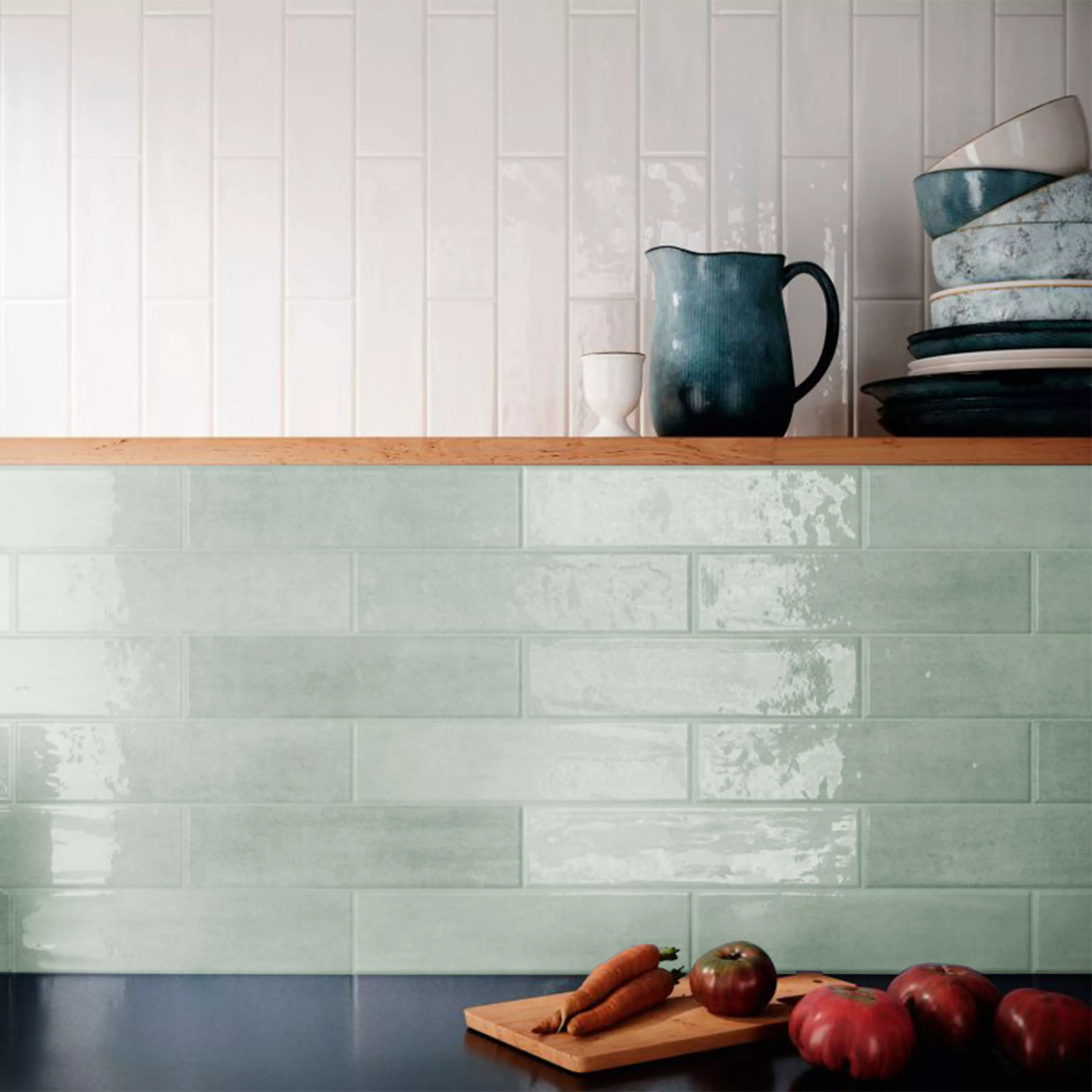 Gi veggene dine et friskt preg av natur med våre Tropea veggfliser i skinnende grønn og bølget struktur. Disse glaserte rektangulære flisene som måler 7,5x30 cm og 8,4 mm tykke gir hjemmet ditt en vintage-estetikk. Den bølgete, skinnende overflaten gir rommene en subtil dynamikk og skaper en livlig atmosfære.