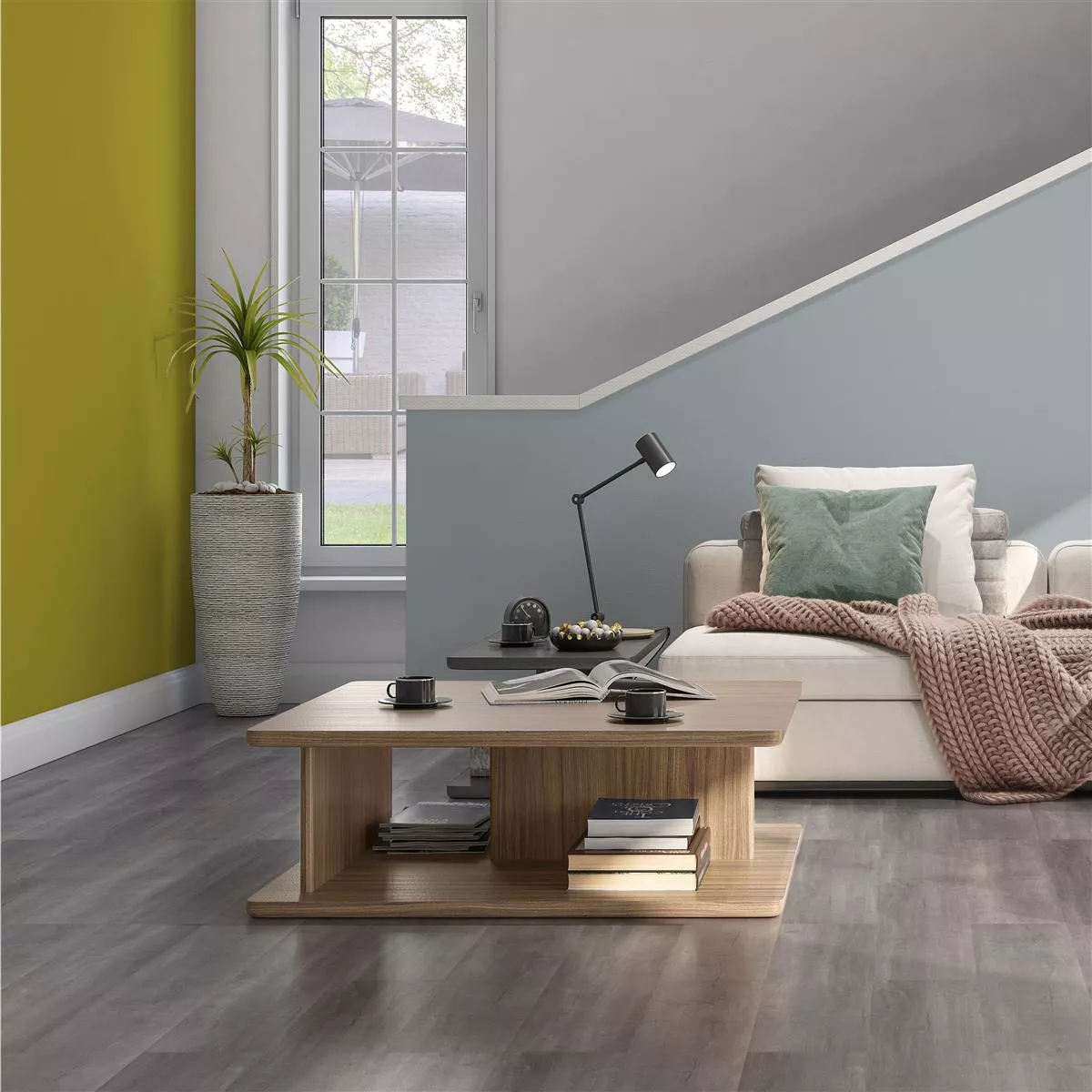 Vårt Woodburn vinylgulv i grått med klikksystem og integrert trinnlydsisolering imponerer med sin autentiske treimitasjon.Det praktiske klikksystemet muliggjør rask og ukomplisert montering. Vinylgulvet passer for alle oppholdsrom og er også vanntett.